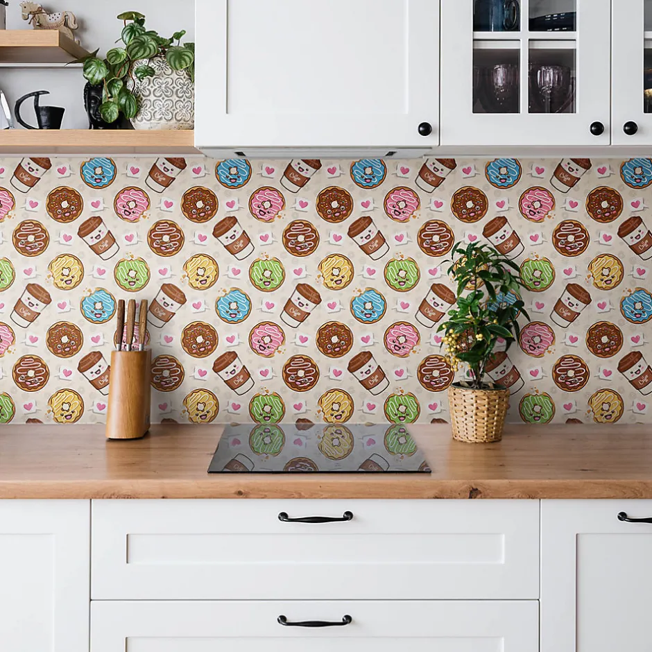Carreaux vinyle 30×30 cm Beignets et café de dessins animés 9 pcs-Tulup