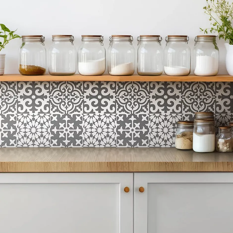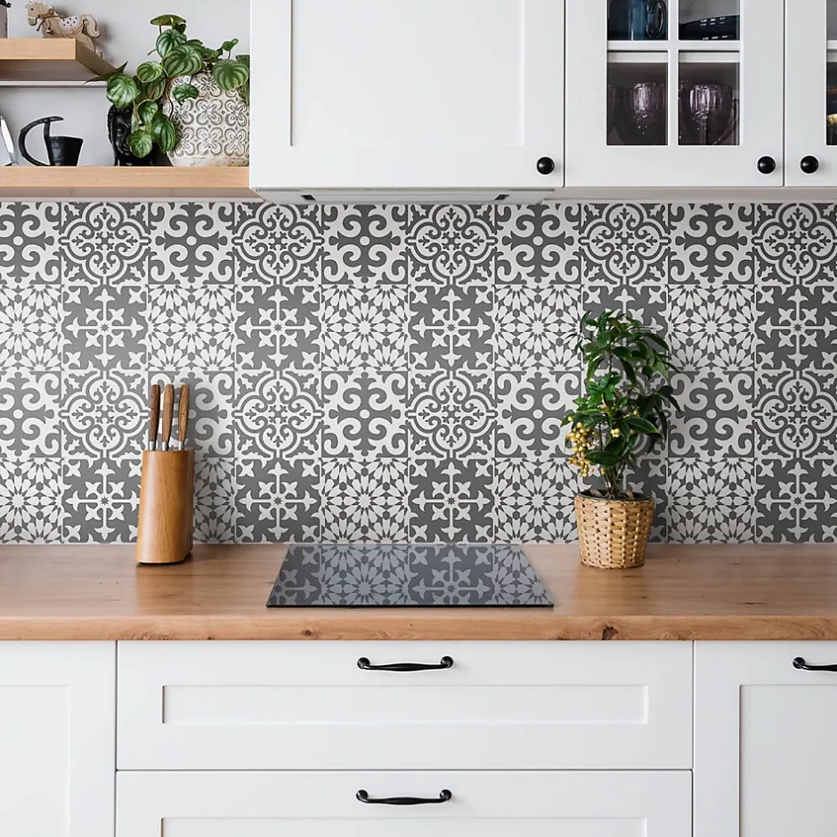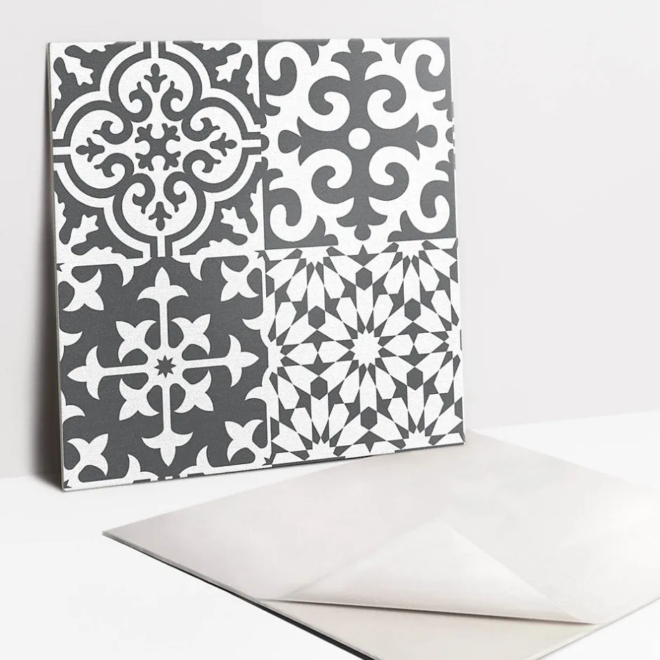 Carreaux vinyle 30×30 cm Carreaux gris à motif portugais 9 pcs-Tulup Online