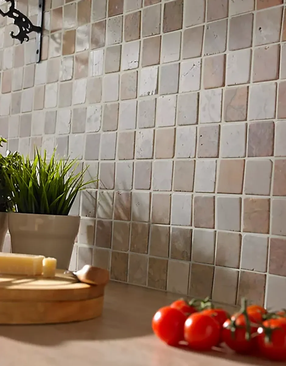 Plaque de mosaïque en marbre naturel à poser au mur ou au sol.À utiliser en tant que listel ou seule pour mettre en valeur un mur.Instructions d’entretien :N’utilisez pas de chiffons abrasifs ni de nettoyants corrosifs.Toujours respecter les instructions du fabricant concernant le mortier-colle et les joints de carrelage.Dimensions :- Trame : 30×30 cm- Epaisseur : entre 0,9 et 1 cmMatériaux : Marbre naturelCouleur : multicolorePoids : 5 kg
