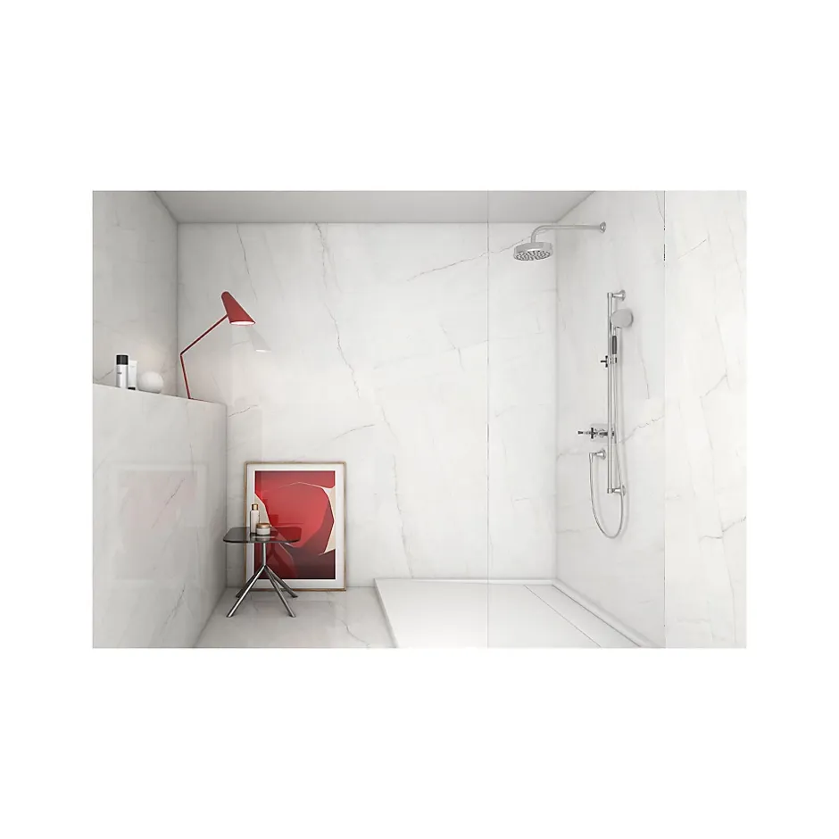 Couleurs : blanc veiné gris clairFormats (rectifiés) : 120x120cm / 120x60cm / 60x60cm / 60x30cmÉpaisseur : 1cm Finition : poliEffet : Marbre Application : sol et mur / intérieur et extérieur RECOMMANDATION : prévoir un volume de 10% ou 15% supplémentaire (pose droite ou diagonale) par rapport à votre surface pour les pertes liées aux coupes et au calepinage.