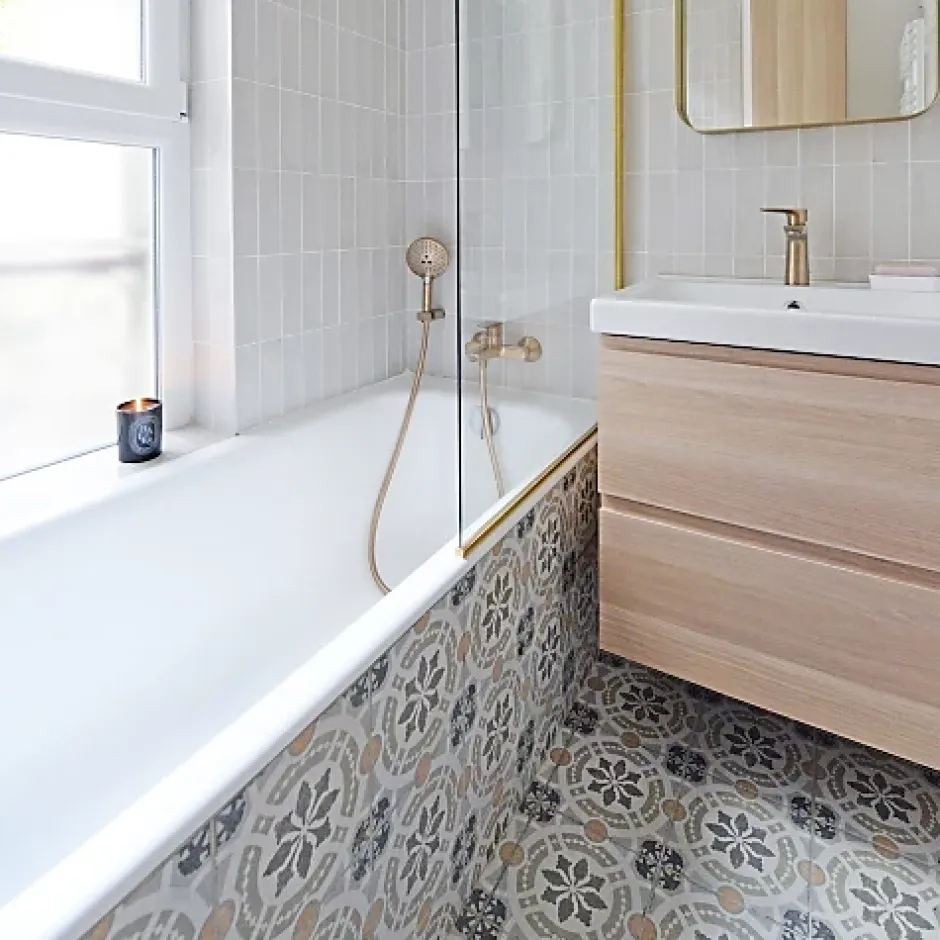 Ces carreaux effet ciment rappellent le charme des sols anciens avec leurs motifs géométriques et leurs teintes douces. Ils s’intègrent facilement dans une cuisine, une entrée ou une salle de bain, et se marient aussi bien à des matériaux bruts qu’à des éléments plus modernes.Pour votre projet, pensez à prévoir environ 10 % de carreaux supplémentaires afin de compenser les coupes et ajustements lors de la pose.