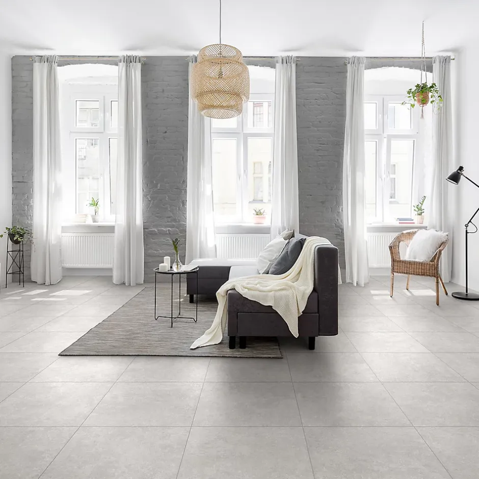 Carrelage intérieur sol et mur en grés cérame émaillé Prisma perla effet pierre matifié 60×60 cm