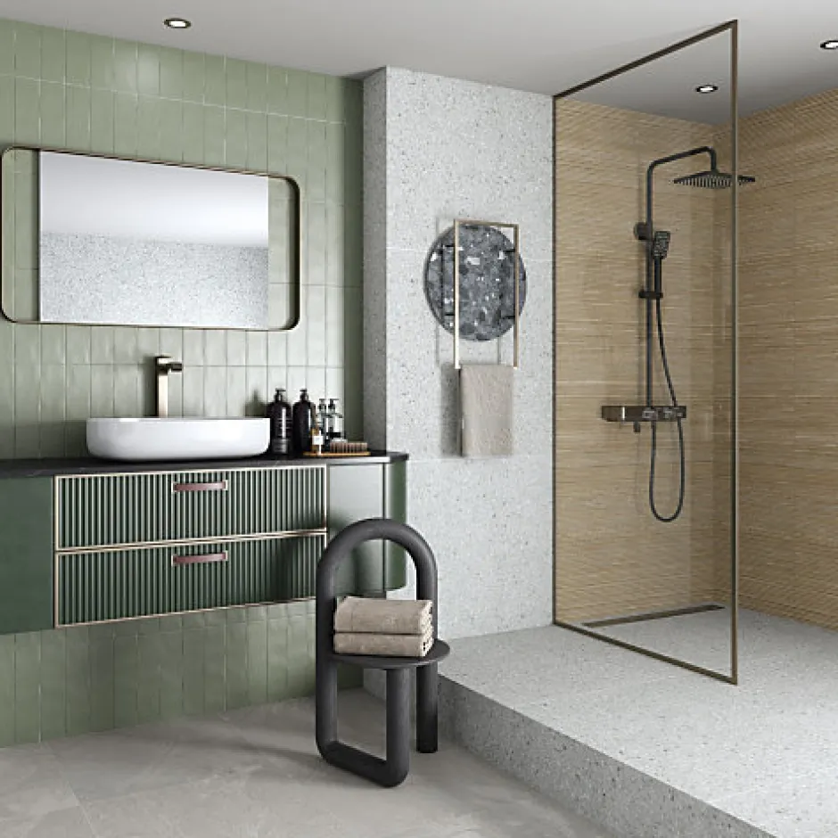 Carrelage mur effet zellige bejmat satiné gris claire 6,5x20 cm MALLORCA GREY-Aelle Carrelage Outlet
