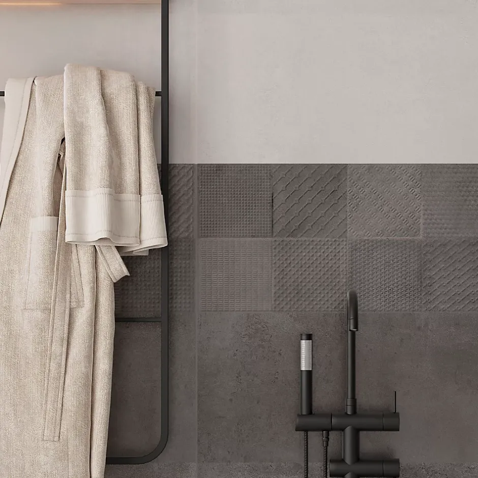 Le carrelage mural décor anthracite Pavlos, de dimensions 30 x 90 cm, apporte une touche moderne et élégante à vos espaces intérieurs. Son effet béton mat offre un rendu esthétique et contemporain. Conçu pour un usage exclusivement intérieur, il est idéal pour habiller les murs de votre salle de bain, cuisine ou salon. Chaque pack contient 1 carreau, couvrant une surface de 1.35m².