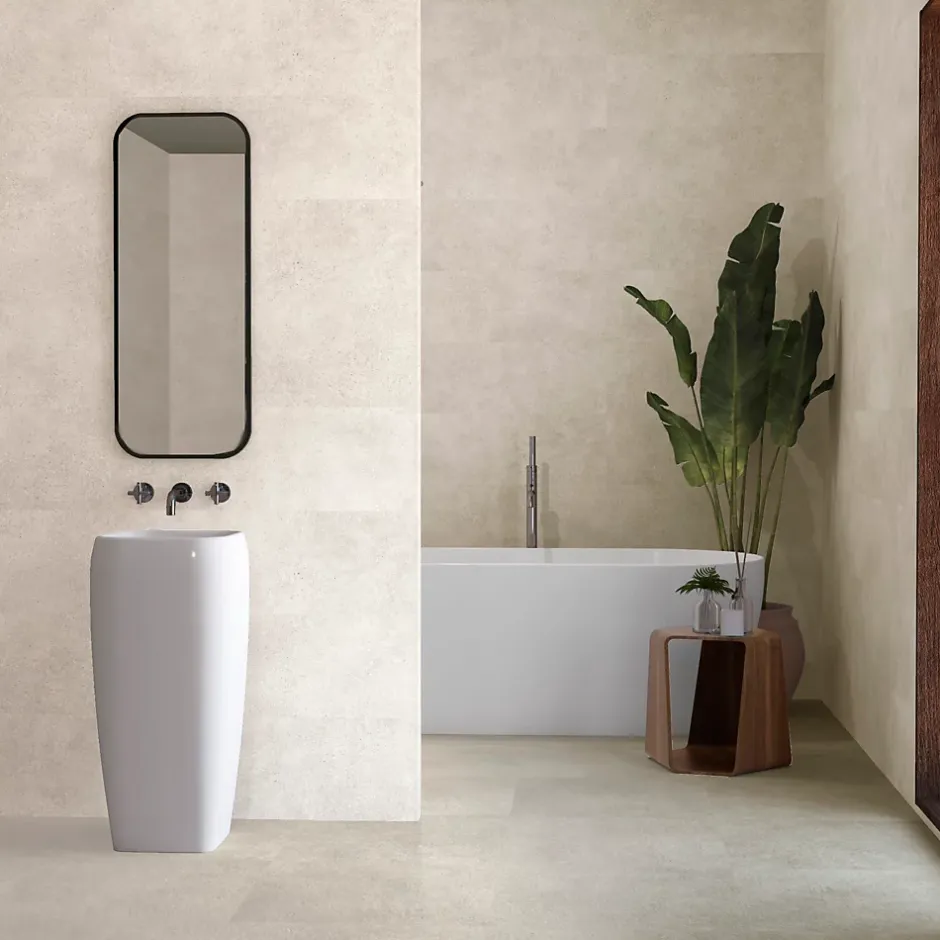 - Son aspect béton blanc apporte une touche moderne et industrielle à votre intérieur.