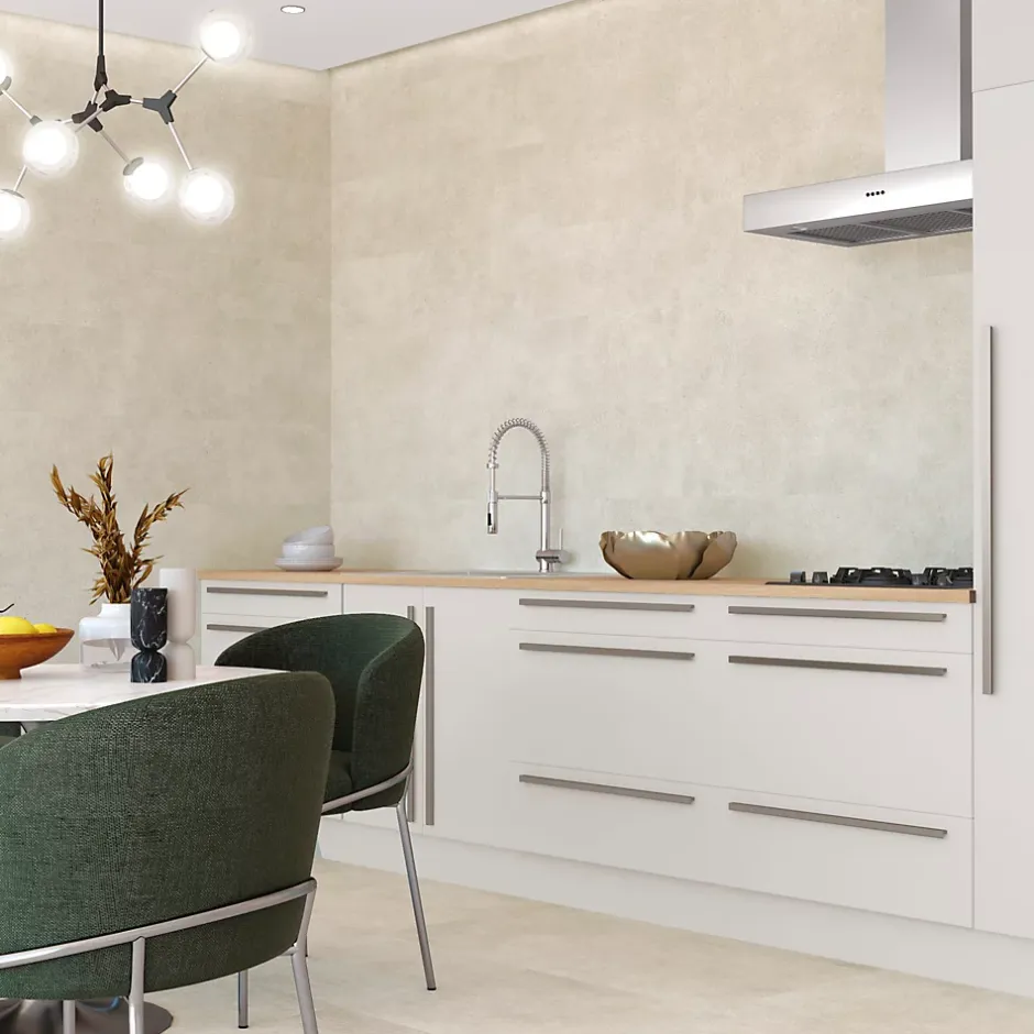 - Conçu spécialement pour les murs de salles de bains et cuisines, il résiste à l’humidité et aux éclaboussures.