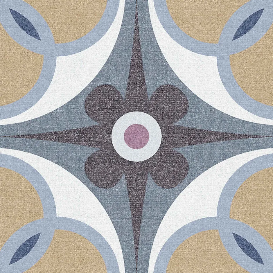 Combinaison joyeuse et colorée type patchwork de designs classiques de carrelage en porcelaine inspiré par les motifs hydrauliques. Peut être posé dans tous les espaces résidentiels et les zones humides grâce à sa pâte porcelanique avec moins de 0,5% d’absorption d’eau et à son émail vitrifié qui le rend imperméable aux taches et à l’humidité