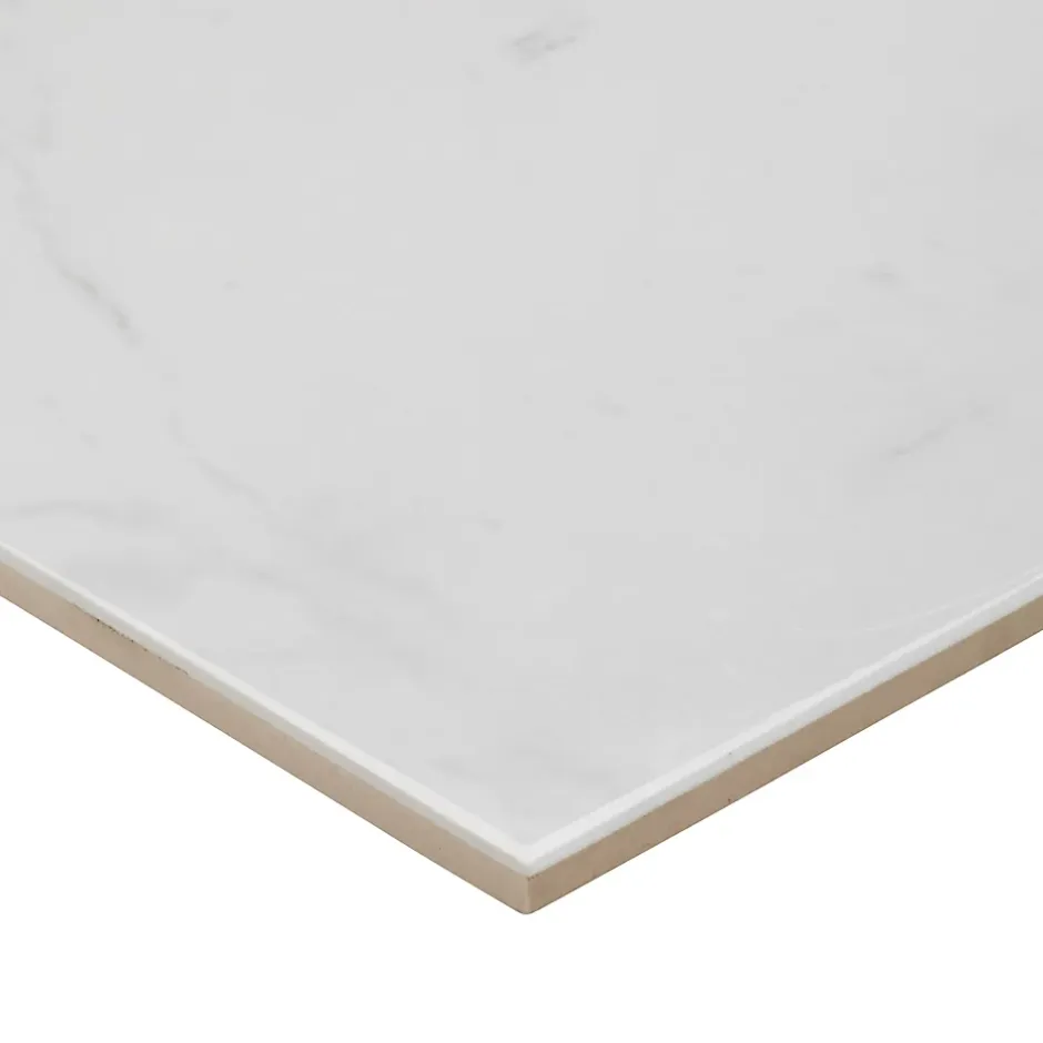 - Les carreaux aspect marbre blanc veiné rectangulaires et carrés et les mosaïques assorties forment un ensemble à la finition ultra brillante. Apportez une touche d’élégance à votre maison