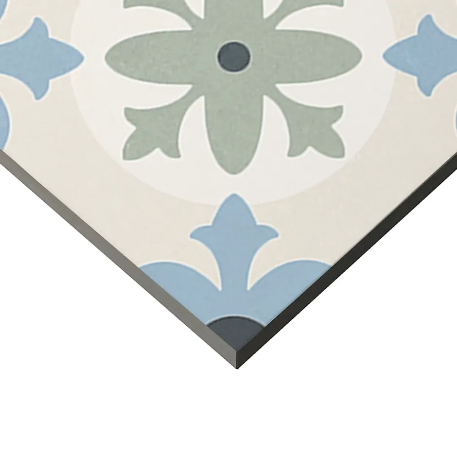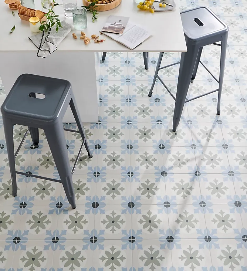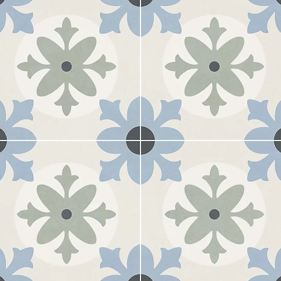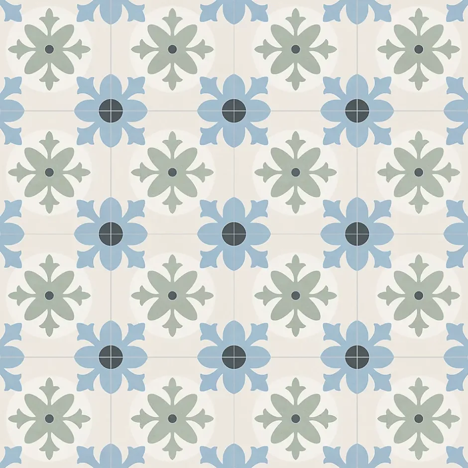 Carrelage sol et mur effet carreaux de ciment tons bleus et verts L.45 x l.45 cm x ép.9,5 mm, Mykonos Mediterranea Javea