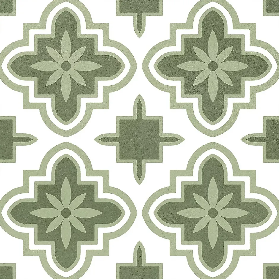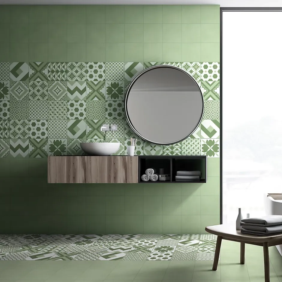 Le carrelage sol et mur Glamour Mint Mix apporte une touche d’originalité et de fraîcheur à votre intérieur. Avec ses motifs variés effet carreaux de ciment dans des tons verts, il crée une ambiance unique et personnalisée. Chaque boîte contient un mélange aléatoire de 12 décorations différentes, combinant motifs floraux et géométriques pour un rendu esthétique et harmonieux. Idéal pour murs et sols intérieurs, ce carrelage fabriqué en Italie allie esthétisme et qualité.