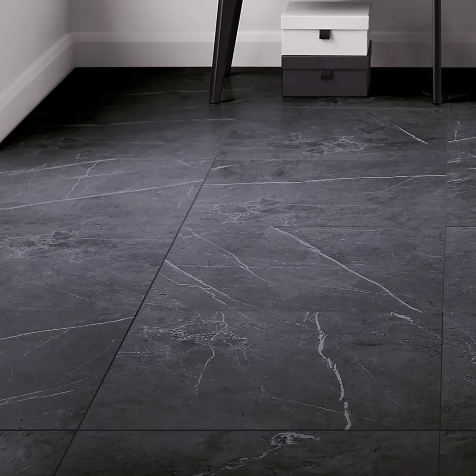 Carrelage sol et mur intérieur effet marbre noir mat L.60 x l.60 cm x ép.9 mm – lot de 3, GoodHome Ultimate Marble