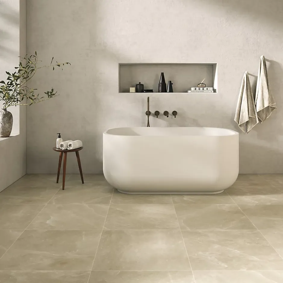 - Inspiré par la nature, le carrelage Himalaya grège offre un charme authentique avec son effet pierre rehaussé d’une touche contemporaine.
