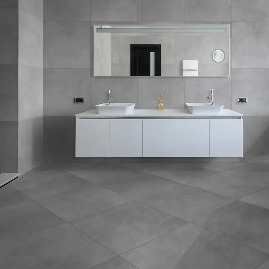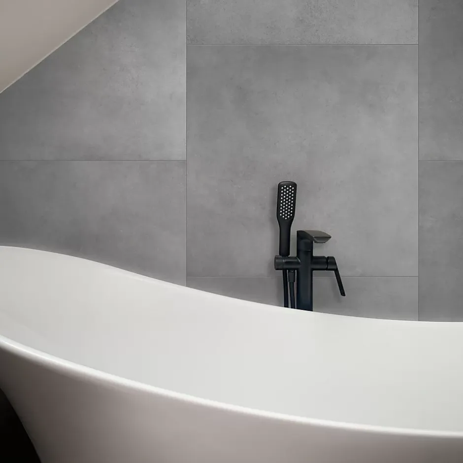 Carrelage sol et mur intérieur gris mat effet béton L.61,6 x l.61,6 cm x ép.8,5 mm – lot de 4, GoodHome Konkrete