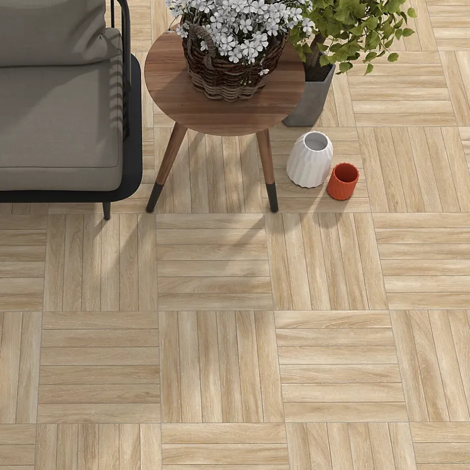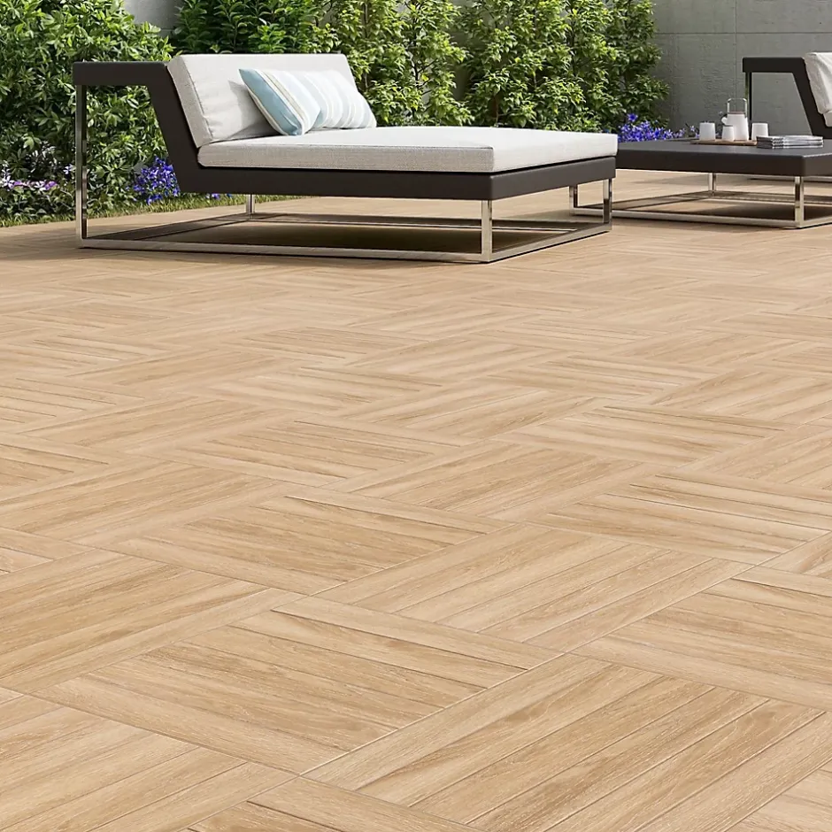 Le carrelage Deckland d’Ecoceramic, en format 45 x 45 cm, reproduit fidèlement l’aspect naturel du chêne grâce à sa teinte beige miel chaleureuse et son rendu mat texturé. Parfait pour créer un extérieur accueillant et authentique, il bénéficie d’une surface émaillée résistante aux taches, aux rayures et aux intempéries. Son adhérence élevée en fait un choix sûr pour les zones humides. Non rectifié pour un effet plus brut, il est fabriqué en grès cérame de 9,5 mm, résistant au gel et idéal pour les murs et sols extérieurs. Fabriqué en Espagne, il allie durabilité et esthétique bois.
