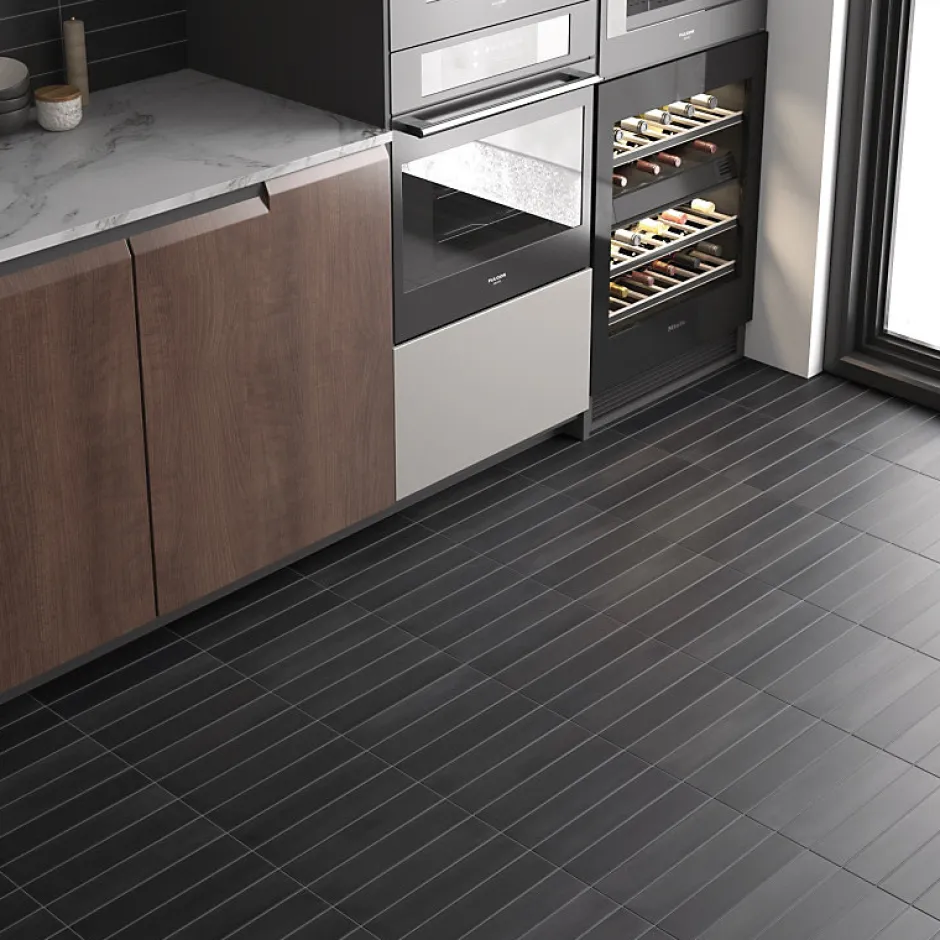 Carrelage sol / mur brique déco mixe mate et brillant effet béton noir 6×30 cm WADI DECOR NOIR-Aelle Carrelage Clearance