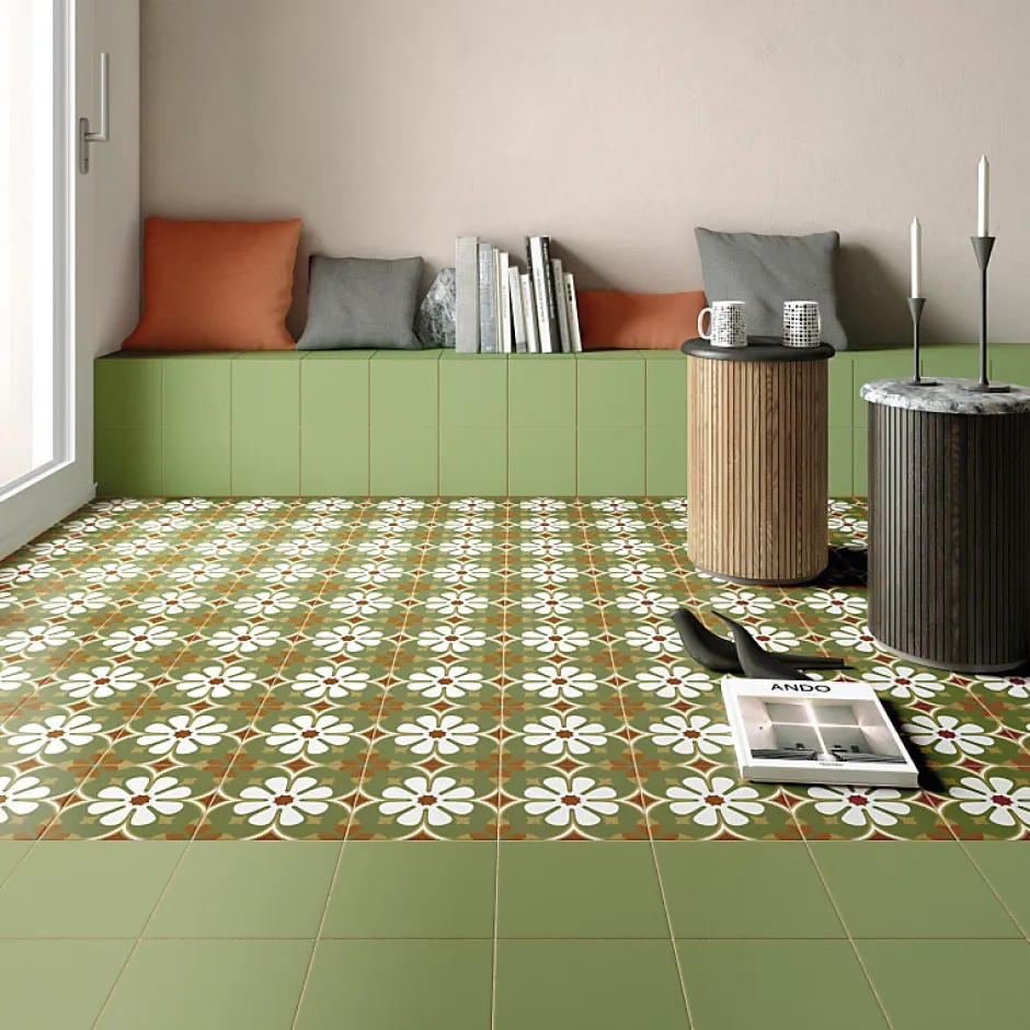 Carrelage sol / mur effet ciment uni vert 20x20 cm RIVOLI GREEN 30716-Aelle Carrelage Hot
