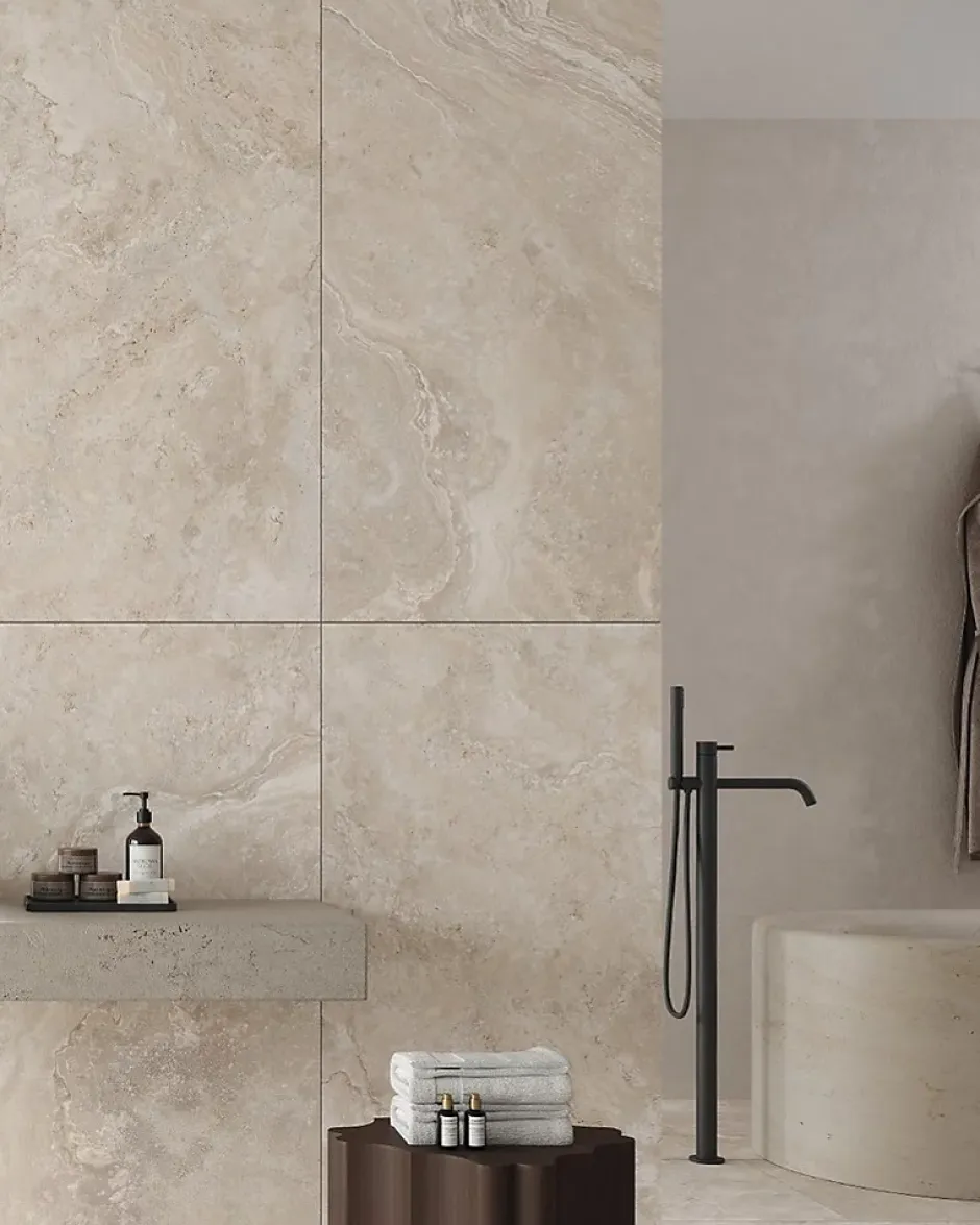 Apportez charme et authenticité à vos espaces avec ce carrelage effet pierre naturelle. Son ton beige clair, agrémenté de nuances douces et de veinages subtils, imite parfaitement le travertin pour un rendu chaleureux et élégant. Idéal pour créer une atmosphère apaisante et lumineuse, aussi bien dans une salle de bain que dans une pièce à vivre.