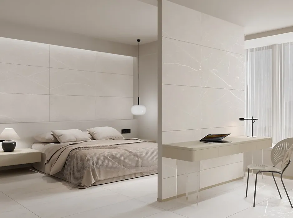 Apportez modernité et subtilité à vos espaces avec le carrelage Qubic Bianco, un revêtement en grès cérame au design raffiné. Grâce à son grand format 60 x 120 cm, il agrandit visuellement la pièce et limite les joints, pour un rendu fluide et contemporain. Le Qubic Bianco se distingue par sa finition mate carving, qui lui confère un léger relief discret, tout en conservant une surface douce au toucher. Son aspect pierre très léger, dans une teinte gris clair, offre un style épuré et lumineux, idéal pour les intérieurs modernes, minimalistes ou zen.