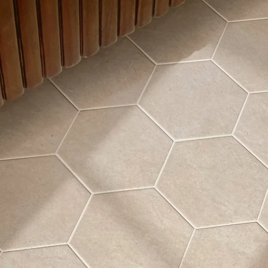 Matière: Grès cérame Dimensions: 17,5 x 20 cm Usage: Intérieur & Extérieur (Terrasse couverte) Destination : Sol & Mur Finition: Mate R9 – A Rectifié: Non Epaisseur: 9 mm Nuances: légères variations Existe en: 6 unis / 4 décors assortis . . . Le charme géométrique et la créativité fusionnent à travers cet hexagonal en grès cérame, qui vous offrira un large éventail de design et de patchworks. Chaque carreau est une fenêtre ouverte sur un monde de couleurs, de textures, qui invitent à l’exploration et à l’expression personnelle. . La forme originale de ce carrelage à l’effet pierre, légèrement texturé, rompt avec les carreaux traditionnels et s’élèvent au delà des limites du design traditionnel. Ses angles parfaitement équilibrés créent une structure intrigante et un dynamisme visuel unique. Chaque carreau se transforme en une pièce de puzzle qui s’emboitent parfaitement les unes avec les autres, formant un lien d’infini possibilités créatives. . Les patchworks de cette collections sont un hommage à la diversité et à la variété. Chaque pièce à son propre caractère, son propre style, mais ensemble ils forment une symphonie visuelle qui éveille votre imagination. . N’hésitez pas à nous contacter pour demander un échantillon. .