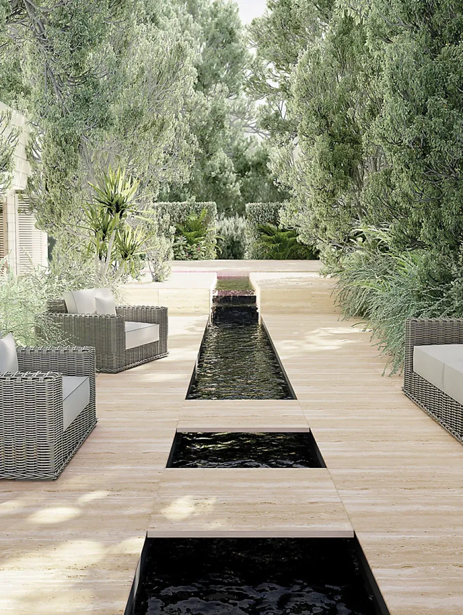 Notre collection de carreaux de sol extérieur effet travertin qui s’intègre parfaitement à tout espace extérieur ou intérieur.