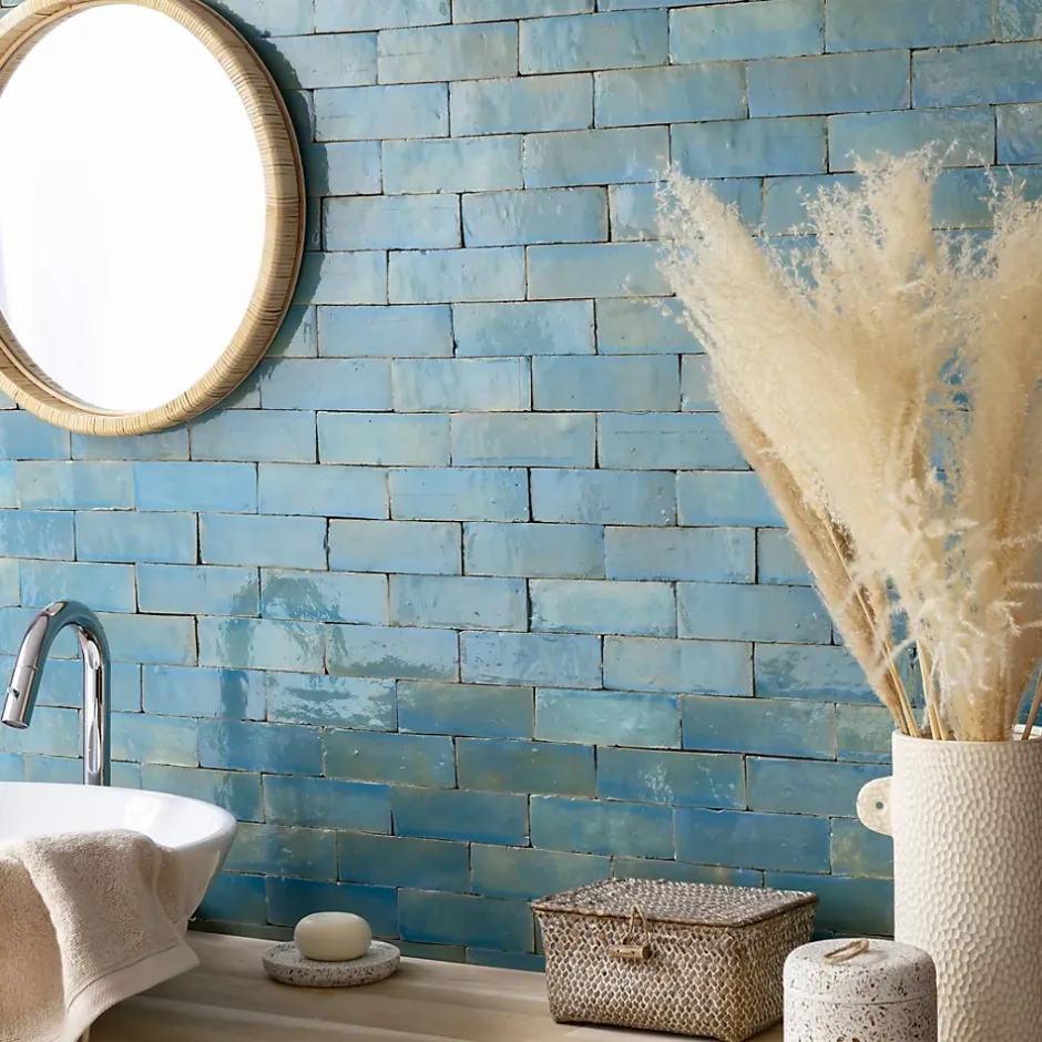 – DESCRIPTION -Ce Carrelage Zellige Marocain est d’une couleur bleu lazuli qui s’intégrera à la perfection dans vos aménagements de cuisine ou de salle de bains.Matière : Terre cuite émailléeCouleur : Bleu LazuliFormat : 5×15 cmEpaisseur : 1,2 cm Finition : BrutOrigine : MarocUtilisation : Intérieur (Sol et Mur) Conditionnement : boîtes de 1 m²- INFORMATIONS -> Du fait de sa fabrication manuelle et artisanale, le zellige est par essence un revêtement imparfait. Les authentiques carreaux de zelliges marocains sont moulés, taillés et émaillés exclusivement à la main selon des méthodes traditionnelles ancestrales. Ces carreaux sont caractérisés par leurs irrégularités et leurs imperfections.Ces particularités purement esthétiques n’altèrent en rien les caractéristiques techniques des produits.En voici une liste non exhaustive :- Eclats sur l’émail ou dans les coins,- Bosses et irrégularités de planéité,- Creux ou trous pouvant laisser apparaitre l’argile,- Craquelures sur la surface de l’émail,- Révélation de l’argile à travers l’émail,- Variations de couleurs, de nuances et de tons,- Variations d’épaisseurs et de dimensions,- Sur trame : irrégularités d’espacements entre les pièces.> Si vous souhaitez un carrelage parfait : alors n’achetez pas de zellige authentique mais reportez vous sur de la céramique industrielle imitation zellige.> Nos photos sont réalisées par des professionnels avec l’objectif de représenter les produits de la façon la plus fidèle possible. Cependant, en fonction de votre écran et des paramètres appliqués, l’aspect et les couleurs du produit sur votre écran peuvent légèrement différer du produit original.- LIVRAISON -Forfait frais de port : tarif unique, sans limite de quantité. Avant votre commande Assurez-vous que l’adresse de