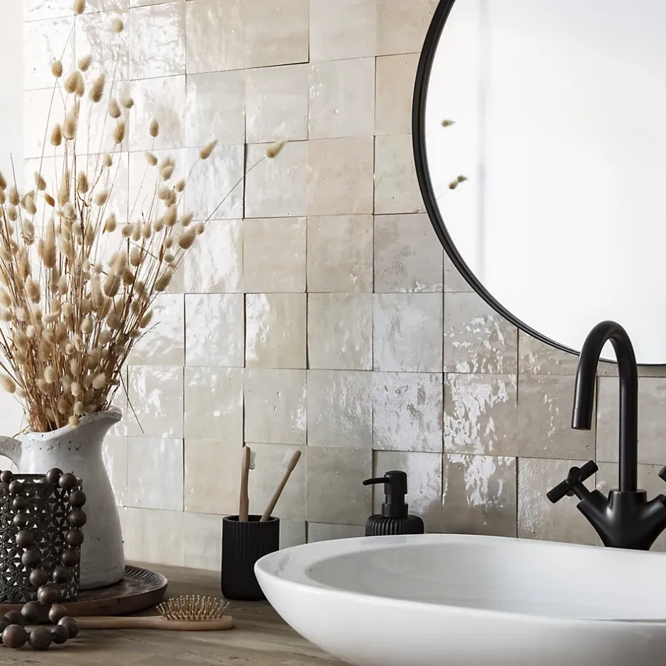– DESCRIPTION -Ce Carrelage Zellige Marocain est d’une couleur gris beige qui s’intégrera à la perfection dans vos aménagements de cuisine ou de salle de bains.Matière : Terre cuite émailléeCouleur : Gris BeigeFormat : 10×10 cmEpaisseur : 0,9 à 1,2 cm Finition : Taillé mainOrigine : MarocUtilisation : Intérieur (Sol et Mur) Conditionnement : vendu par lots de 0,5 m² soit 50 carreaux de 10×10 cm. – INFORMATIONS -> Du fait de sa fabrication manuelle et artisanale, le zellige est par essence un revêtement imparfait. Les authentiques carreaux de zelliges marocains sont moulés, taillés et émaillés exclusivement à la main selon des méthodes traditionnelles ancestrales. Ces carreaux sont caractérisés par leurs irrégularités et leurs imperfections.Ces particularités purement esthétiques n’altèrent en rien les caractéristiques techniques des produits.En voici une liste non exhaustive :- Eclats sur l’émail ou dans les coins,- Bosses et irrégularités de planéité,- Creux ou trous pouvant laisser apparaitre l’argile,- Craquelures sur la surface de l’émail,- Révélation de l’argile à travers l’émail,- Variations de couleurs, de nuances et de tons,- Variations d’épaisseurs et de dimensions,- Sur trame : irrégularités d’espacements entre les pièces.> Si vous souhaitez un carrelage parfait : alors n’achetez pas de zellige authentique mais reportez vous sur de la céramique industrielle imitation zellige.> Nos photos sont réalisées par des professionnels avec l’objectif de représenter les produits de la façon la plus fidèle possible. Cependant, en fonction de votre écran et des paramètres appliqués, l’aspect et les couleurs du produit sur votre écran peuvent légèrement différer du produit original.- LIVRAISON -Forfait frais de port : tarif unique, sans limite de quantité. Av