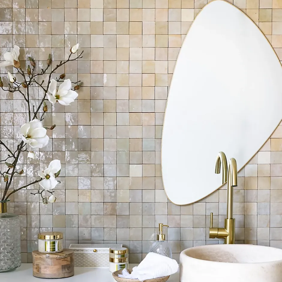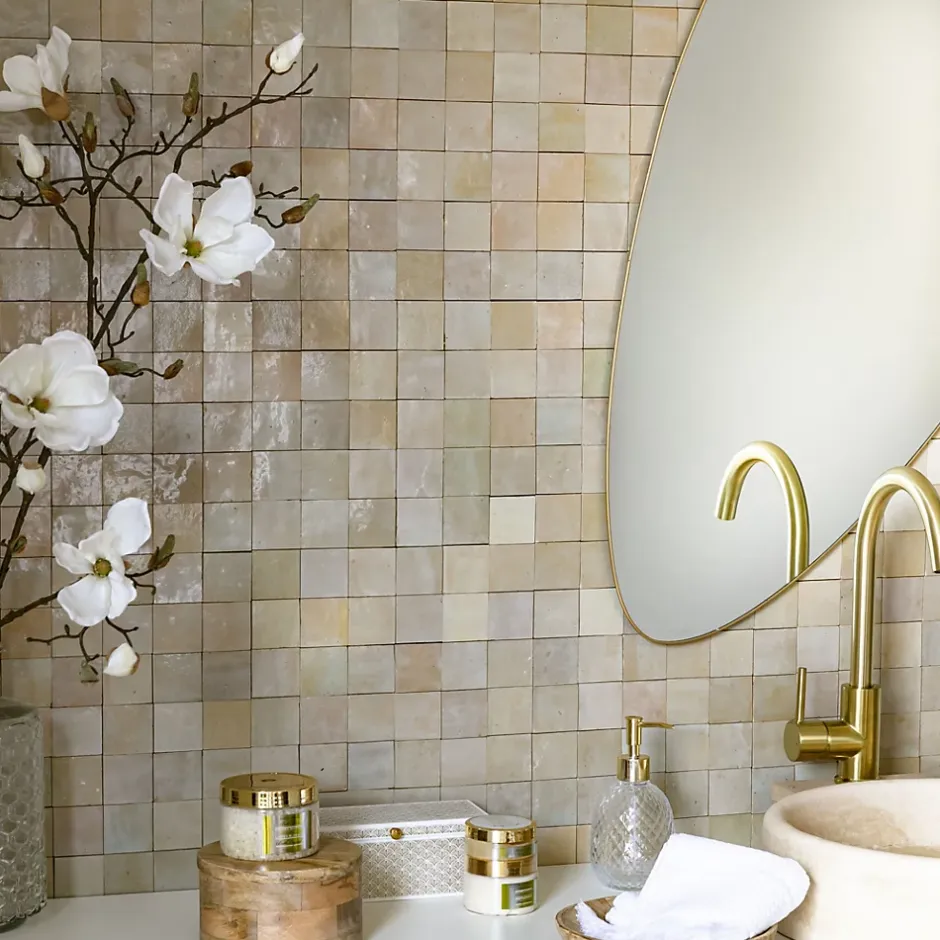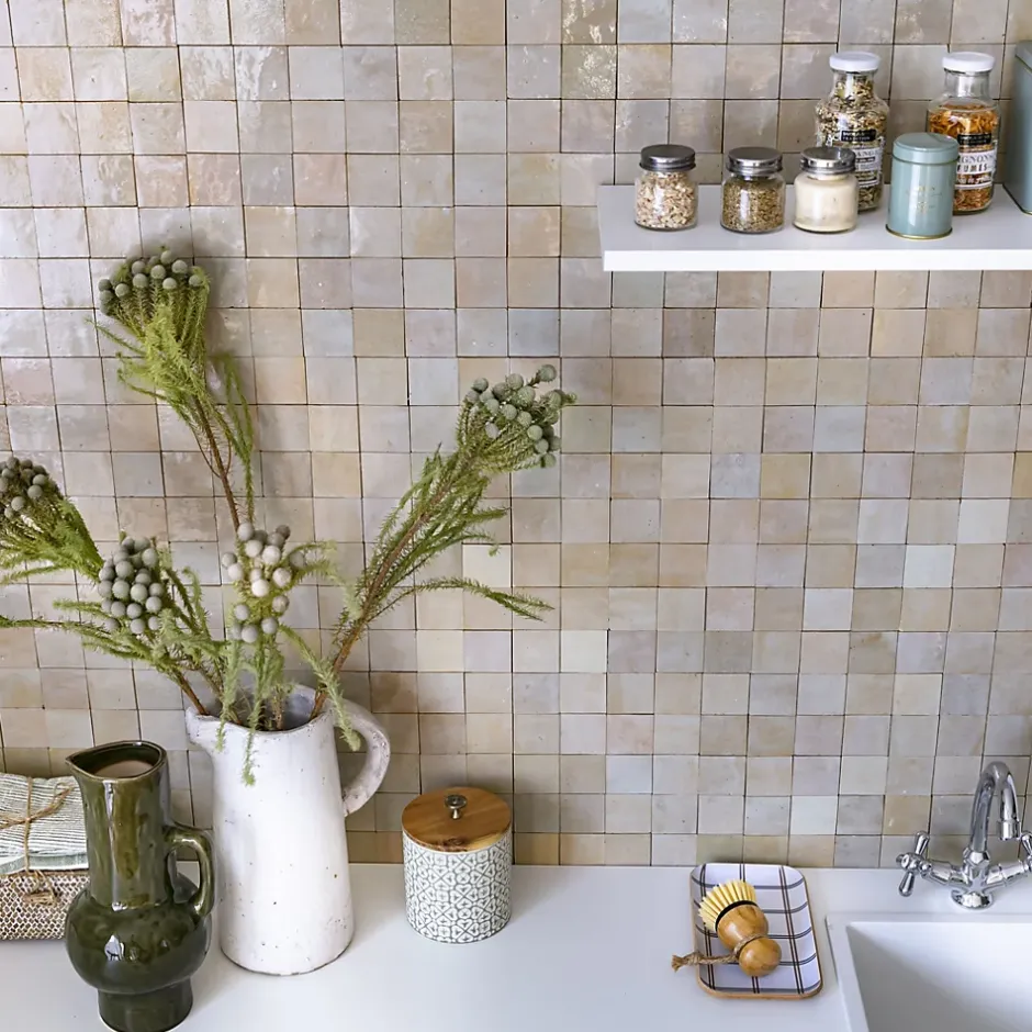 Découvrez notre Carrelage Zellige Marocain Gris Beige 5×5 cm (vendu par plaque de 30×30 cm soit 0,09 m²) – INFORMATIONS -> Ce produit est en Terre cuite. Comme tous les matériaux naturels, des variations sont possibles entre les produits présentés et ceux livrés ainsi qu’entre les produits livrés eux-mêmes. De manière non limitative, ces variations peuvent porter sur la couleur, le veinage, l’aspect, la dimension, l’épaisseur, et autres défauts purement esthétiques qui n’altèrent en rien les caractéristiques techniques des produits.> Ce produit est destiné exclusivement à un usage mural. Tout usage en plan de travail, en table ou en surface en contact avec des aliments est interdite.> Nos photos sont réalisées par des professionnels avec l’objectif de représenter les produits de la façon la plus fidèle possible. Cependant, en fonction de votre écran et des paramètres appliqués, l’aspect et les couleurs du produit sur votre écran peuvent légèrement différer du produit original.