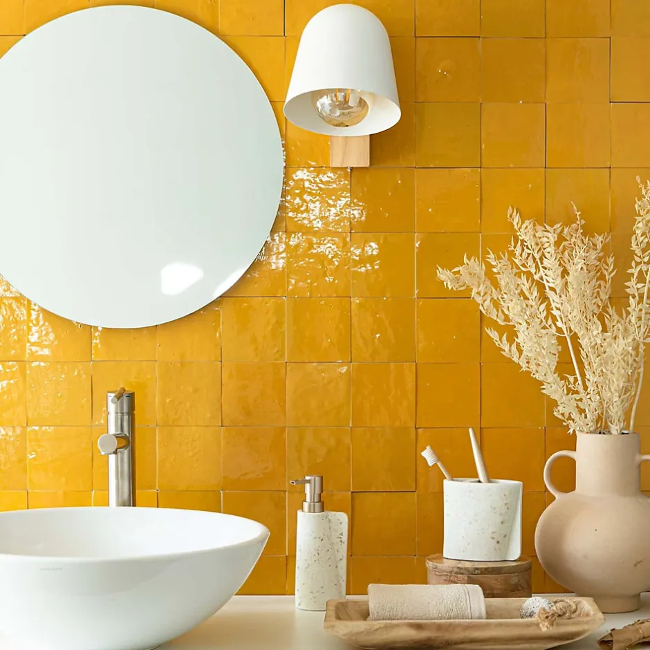 Découvrez notre Carrelage Zellige Marocain Jaune Moutarde 10×10 cm (vendu par 1 m²) – INFORMATIONS -> Ce produit est en Terre cuite. Comme tous les matériaux naturels, des variations sont possibles entre les produits présentés et ceux livrés ainsi qu’entre les produits livrés eux-mêmes. De manière non limitative, ces variations peuvent porter sur la couleur, le veinage, l’aspect, la dimension, l’épaisseur, et autres défauts purement esthétiques qui n’altèrent en rien les caractéristiques techniques des produits.> Ce produit est destiné exclusivement à un usage mural. Tout usage en plan de travail, en table ou en surface en contact avec des aliments est interdite.> Nos photos sont réalisées par des professionnels avec l’objectif de représenter les produits de la façon la plus fidèle possible. Cependant, en fonction de votre écran et des paramètres appliqués, l’aspect et les couleurs du produit sur votre écran peuvent légèrement différer du produit original.- LIVRAISON -Avant votre commande Assurez-vous que l’adresse de livraison est accessible pour un camion de 19T et qu’il est possible de manœuvrer un transpalette (voir CGV). Avant la livraisonUne fois la marchandise expédiée, le transporteur vous contactera afin de planifier un rdv de livraison. Les livraisons ont lieu du lundi au vendredi (hors jours fériés).Lors de la livraisonContrôlez scrupuleusement l’état des produits reçus. En cas d’article manquant ou endommagé, le signaler de manière caractérisée sur le bon de livraison et nous en informer par e-mail sous 24h.