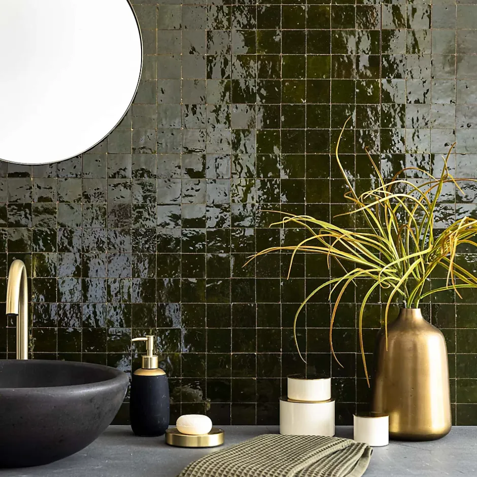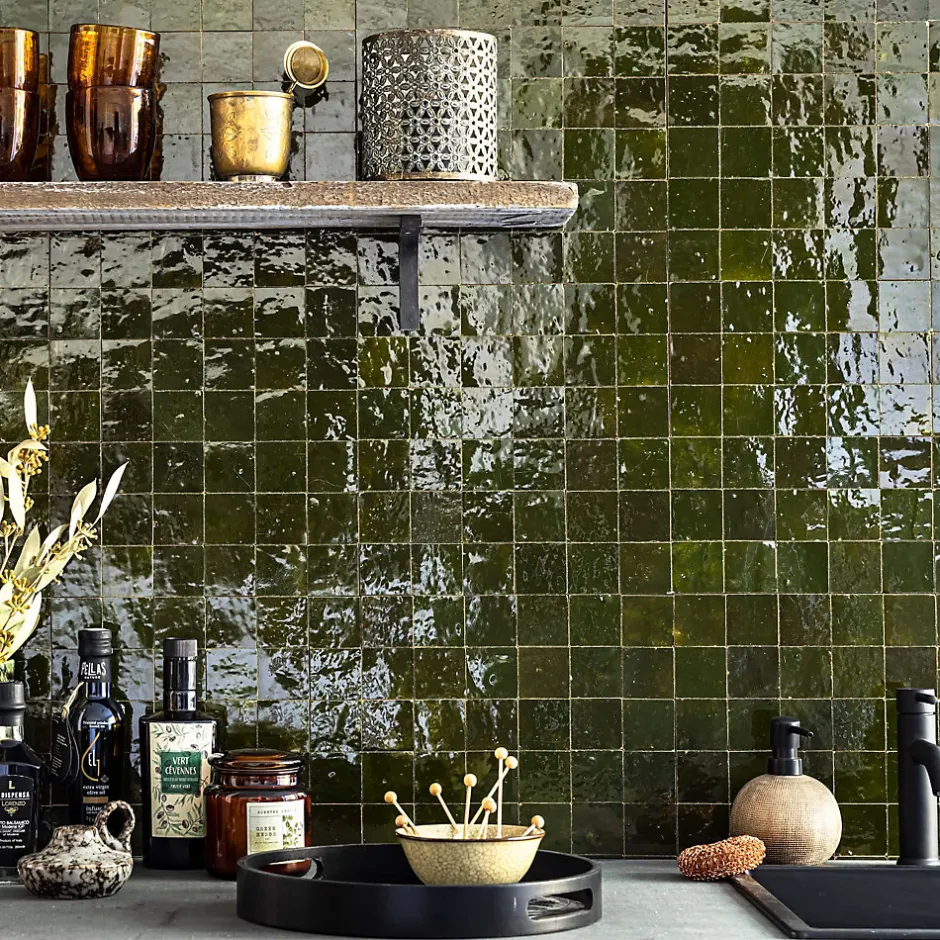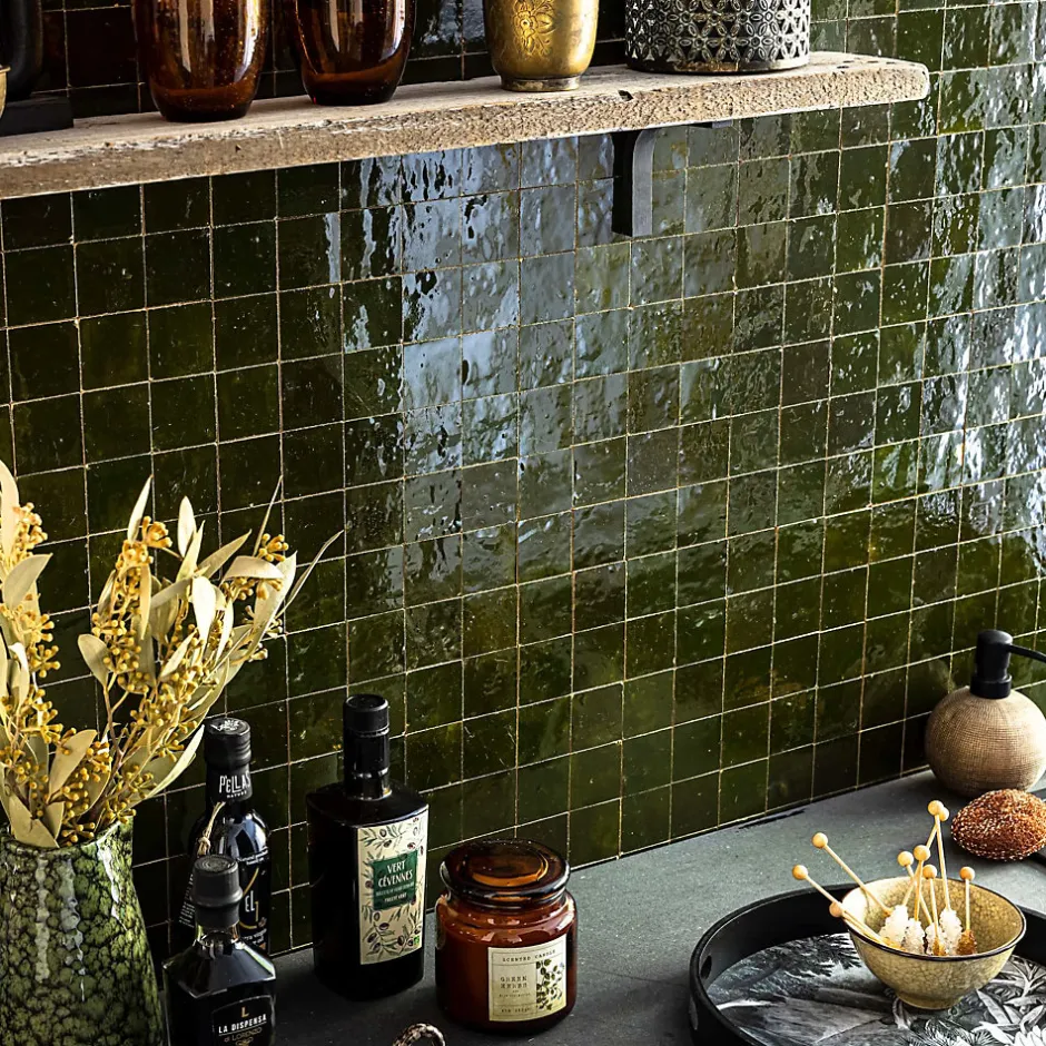 – DESCRIPTION -Cette mosaïque de Carrelage Zellige Marocain s’intégrera à la perfection dans vos aménagements de cuisine ou de salle de bains.Matière : Terre cuite émailléeCouleur : Vert EmpireFormat des carreaux : 5×5 cm Format de la plaque : 30×30 cm Epaisseur : 1 cm Finition : Taillé mainOrigine : MarocUtilisation : Intérieur (Mur) Conditionnement : plaques de 30×30 cm soit 0,09 m²- INFORMATIONS -> Du fait de sa fabrication manuelle et artisanale, le zellige est par essence un revêtement imparfait. Les authentiques carreaux de zelliges marocains sont moulés, taillés et émaillés exclusivement à la main selon des méthodes traditionnelles ancestrales. Ces carreaux sont caractérisés par leurs irrégularités et leurs imperfections.Ces particularités purement esthétiques n’altèrent en rien les caractéristiques techniques des produits.En voici une liste non exhaustive :- Eclats sur l’émail ou dans les coins,- Bosses et irrégularités de planéité,- Creux ou trous pouvant laisser apparaitre l’argile,- Craquelures sur la surface de l’émail,- Révélation de l’argile à travers l’émail,- Variations de couleurs, de nuances et de tons,- Variations d’épaisseurs et de dimensions,- Sur trame : irrégularités d’espacements entre les pièces.> Si vous souhaitez un carrelage parfait : alors n’achetez pas de zellige authentique mais reportez vous sur de la céramique industrielle imitation zellige.> Nos photos sont réalisées par des professionnels avec l’objectif de représenter les produits de la façon la plus fidèle possible. Cependant, en fonction de votre écran et des paramètres appliqués, l’aspect et les couleurs du produit sur votre écran peuvent légèrement différer du produit original.- LIVRAISON -Forfait frais de port : tarif unique, sans limite de quantité. Ava