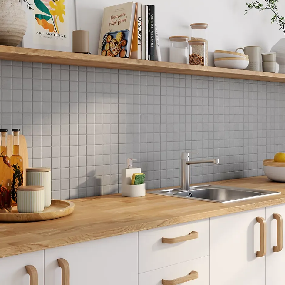 Cette mosaïque grise aspect pierre conférera un look moderne à vos sols ou murs intérieurs et extérieurs. Fabriquée en grès cérame émaillé, elle affiche un style résolument contemporain et tendance. Facile à mettre grâce à sa pose collée, elle peut être installée par touche ou sur pan entier.