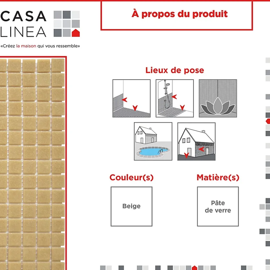 Casa Linéa MOSAÏQUE BEIGE 1 PLAQUE 32,7 x 32,7 CM CASA LINEA