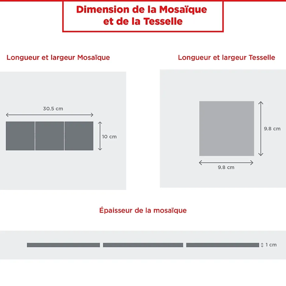 - Les mosaïques sont pré-assemblées sur trame, rendant la pose rapide et accessible à tous, même sans expérience préalable.