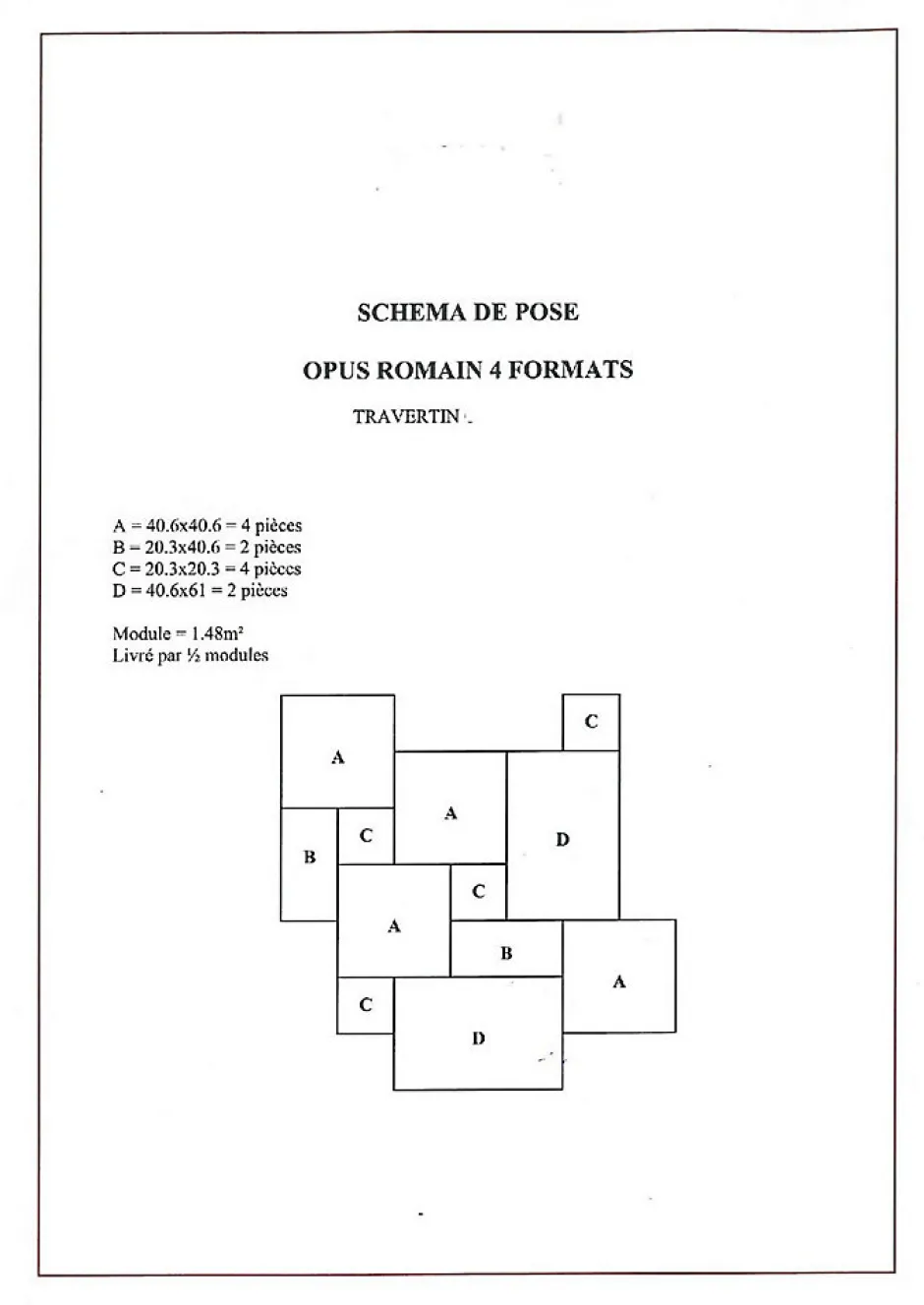 - Le travertin est disponible en multiformat Opus Romain avec 4 formats différents pour une pose personnalisée.