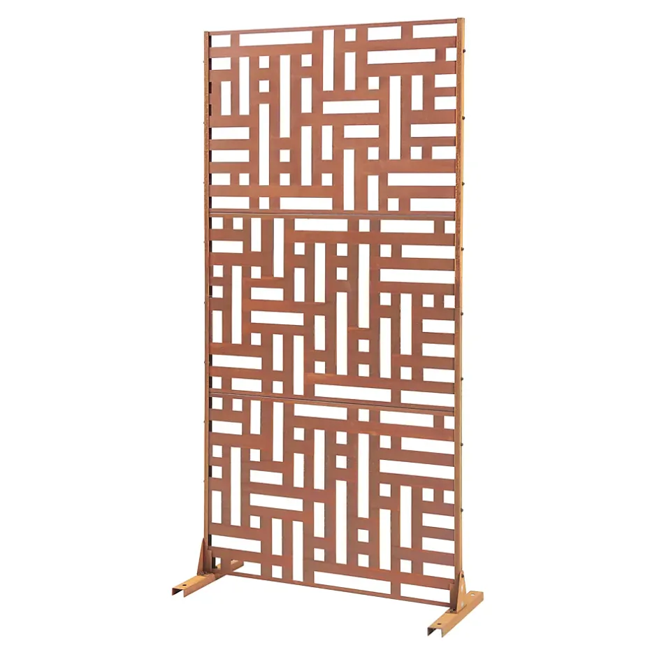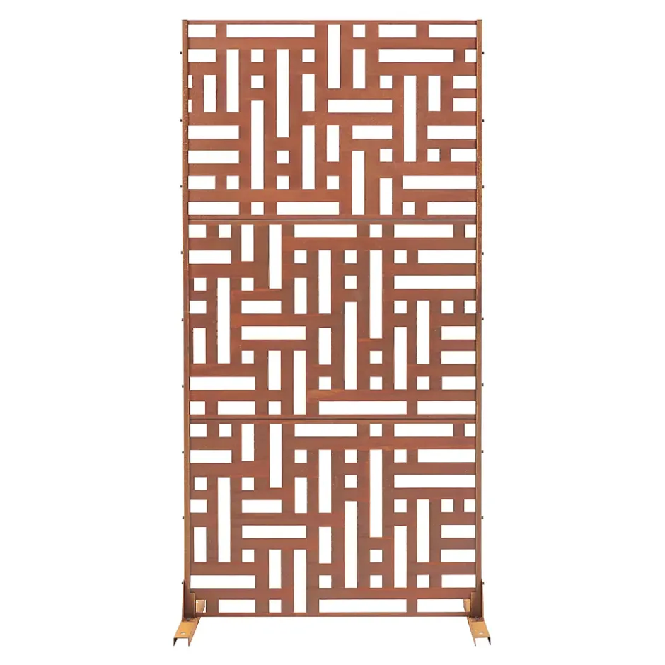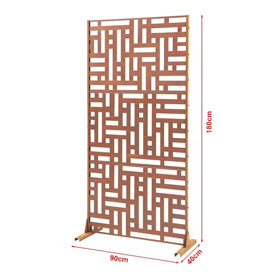 Cette cloison de séparation polyvalente s’adapte aux environnements intérieurs et extérieurs, délimite les espaces tout en protégeant du vent et du soleil, affiche un motif décoratif moderne, s’installe facilement grâce à une structure robuste et est fabriquée en acier pour une utilisation longue durée.