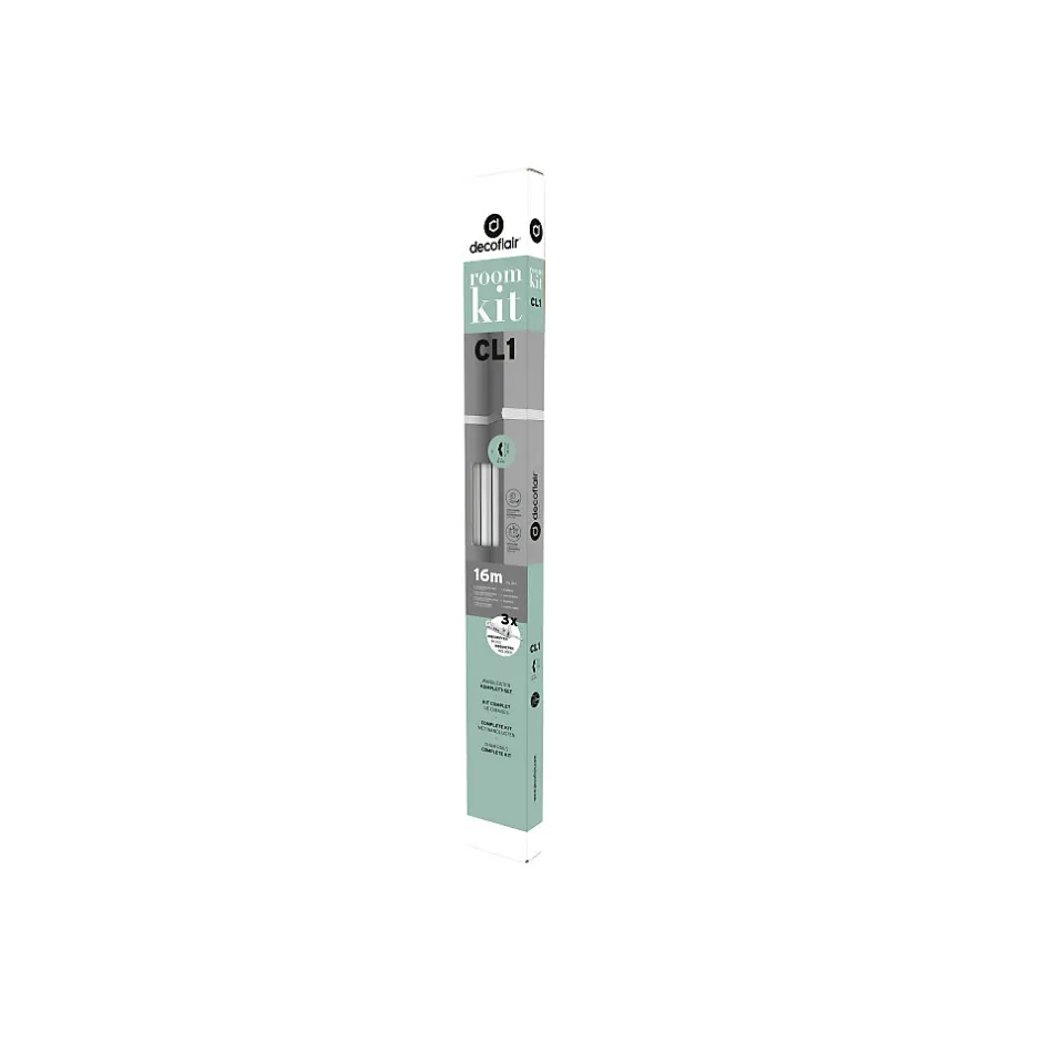 Le Roomkit CL1 est la solution idéale pour donner du caractère à vos murs et d’embellir votre intérieur en un rien de temps. Le Roomkit comprend 16 mètres de cimaises, un angle extérieur et quatre angles intérieurs prédécoupés ainsi que la quantité de colle nécessaire à leur installation. Vous n’aurez donc aucune découpe d’angle à faire, il vous suffit simplement de tout coller au mur. Les profilés sont prêts à peindre dans la couleur de votre choix. Le Roomkit CL1 est la solution idéale pour donner du caractère à vos murs et d’embellir votre intérieur en un rien de temps. Le Roomkit comprend 16 mètres de cimaises, un angle extérieur et quatre angles intérieurs prédécoupés ainsi que la quantité de colle nécessaire à leur installation. Vous n’aurez donc aucune découpe d’angle à faire, il vous suffit simplement de tout coller au mur. Les profilés sont prêts à peindre dans la couleur de votre choix.