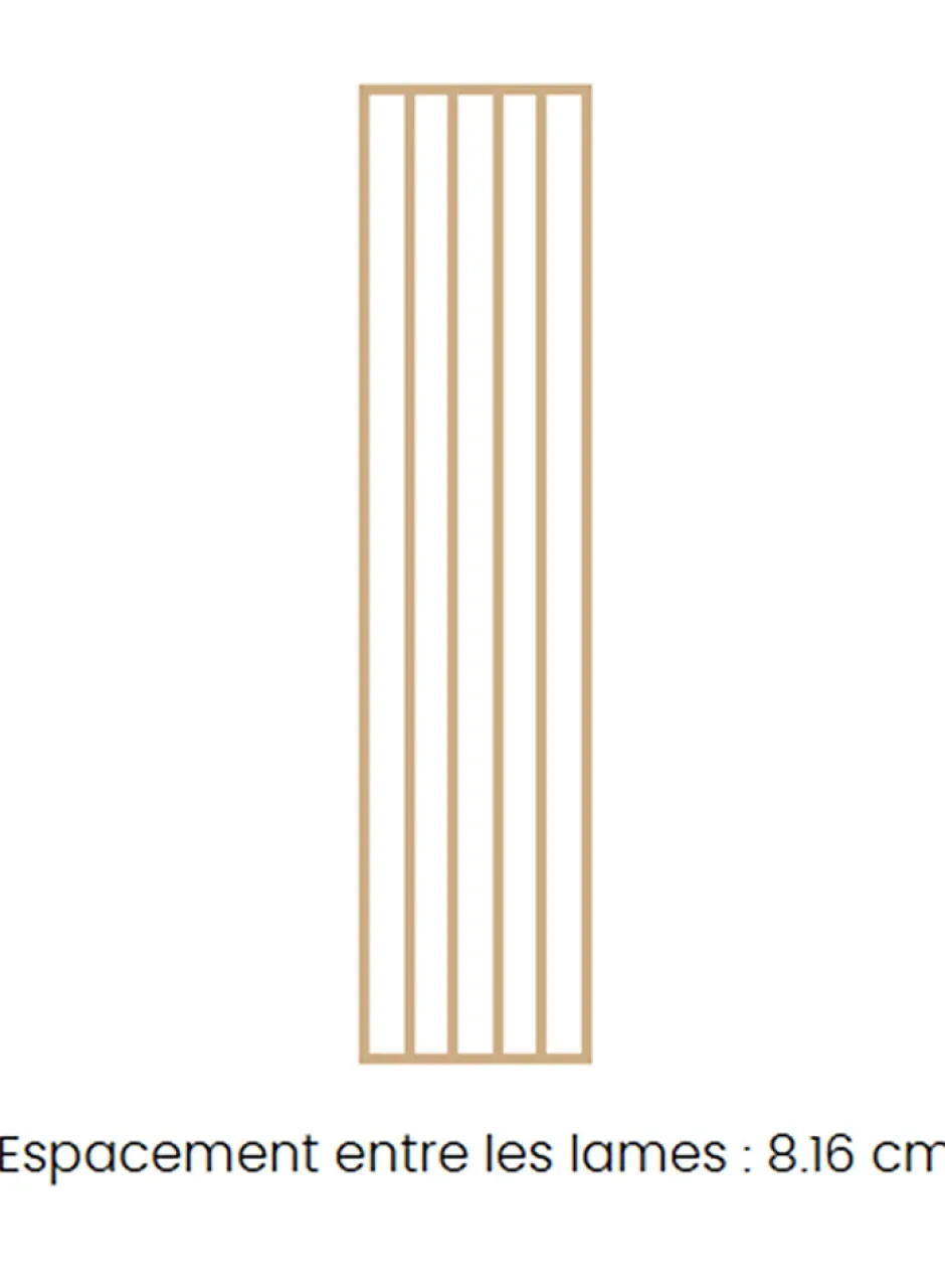 Cloison bois, claustra chêne – 6 lames – H.254 cm × L.60 cm × P.7 cm Optez pour ce kit claustra haut de gamme en chêne massif, au format 60 cm, parfait pour séparer vos pièces avec style et légèreté. Il comprend 6 lames verticales de 247,6 cm et 2 lames horizontales de 60 cm, à assembler avec 24 vis fournies (4 par lame verticale). Les lames sont non percées, pour vous permettre une fixation libre selon votre environnement. Hauteur : 254 cm Largeur : 60 cm Profondeur : 7 cm Lames verticales : 6 × 247,6 cm Lames horizontales : 2 × 60 cm Fixation par vis – 24 vis incluses Installation simple et rapide, avec 2 piges de positionnement fournies Fabrication française La photo est une illustration visuelle du produit. Veuillez vous référer à l’image d’illustration pour une idée du rendu du bois. Fabriqué par AD LYON GROUPE dans notre usine située dans l’Ain, près de Lyon.
