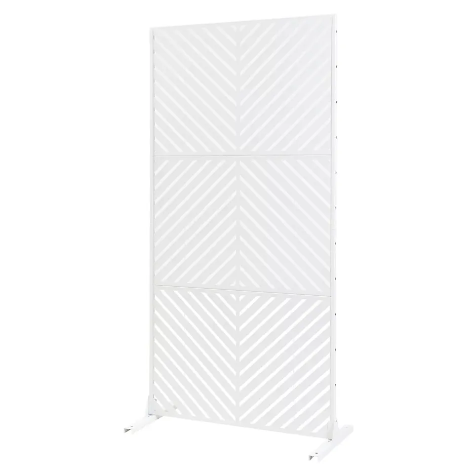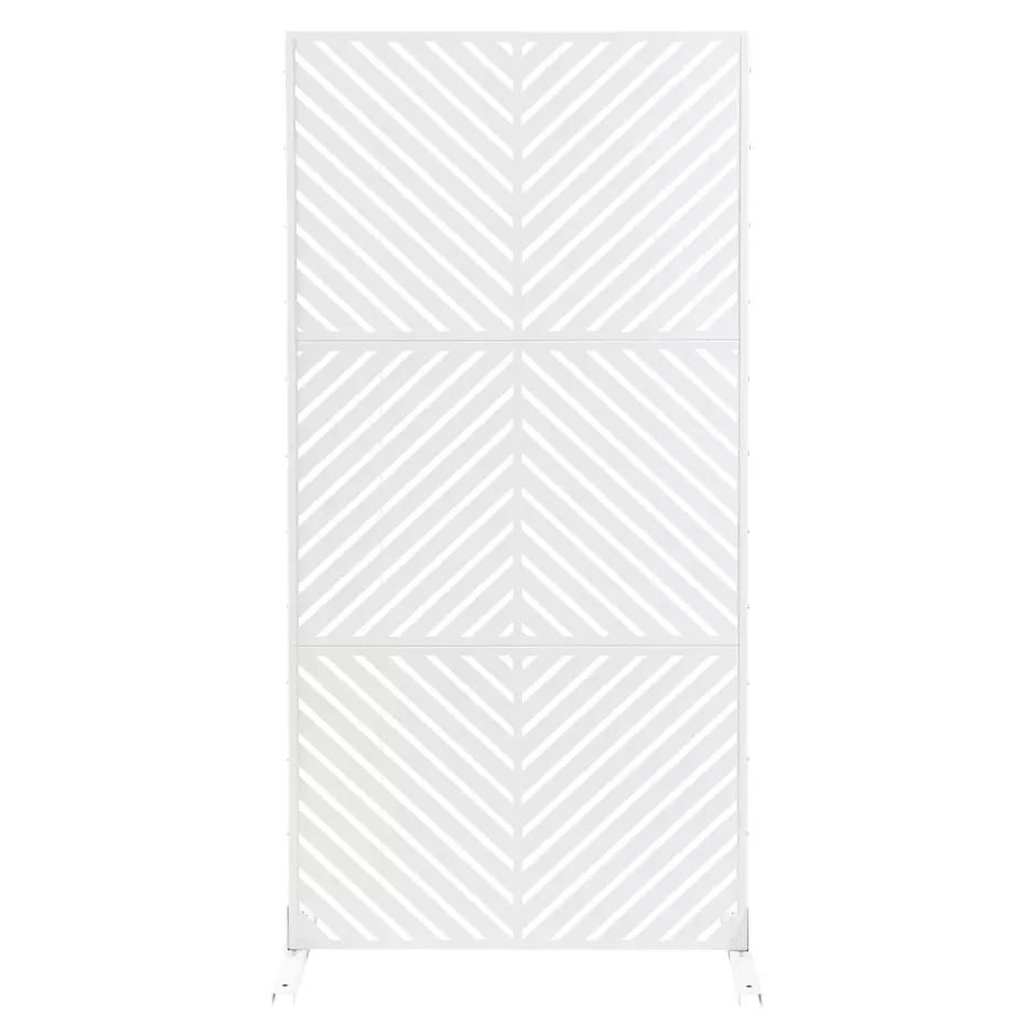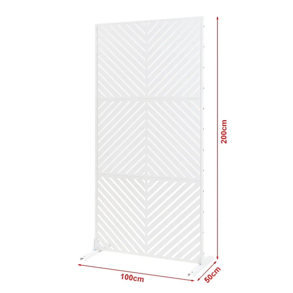 Cloison de séparationCette élégante cloison est la solution parfaite pour créer de l’intimité ou séparer différentes zones dans une pièce. Que ce soit dans le salon, le bureau ou d’autres pièces, il s’intègre parfaitement à tout environnement.Le motif décoratif de la cloison attire l’attention. Son design moderne et intemporel confère une touche de style à chaque pièce.Elle est fabriquée en métal de haute qualité avec des découpes précises qui créent un jeu d’ombre et de lumière attrayant. Elle convient parfaitement à l’aménagement d’espaces de vie et de travail modernes.Le montage de la cloison est simple et rapide. Les pieds robustes assurent une stabilité et une sécurité optimales.Points forts du produit :- séparation de pièce adaptée au bureau comme à la maison- idéal pour délimiter différentes zones- structure robuste pour une bonne stabilité- les découpes créent des jeux d’ombre et de lumière- le motif décoratif offre un design intemporel- montage simple et rapideDimensions :- totales (h x l x p) : 200 x 100 x 50 cm- épaisseur de la cloison : 1,5 cmMatière :acier galvaniséCouleur :blancContenu de la livraison :1 x cloison de séparationProduit de la marque :casa.pro