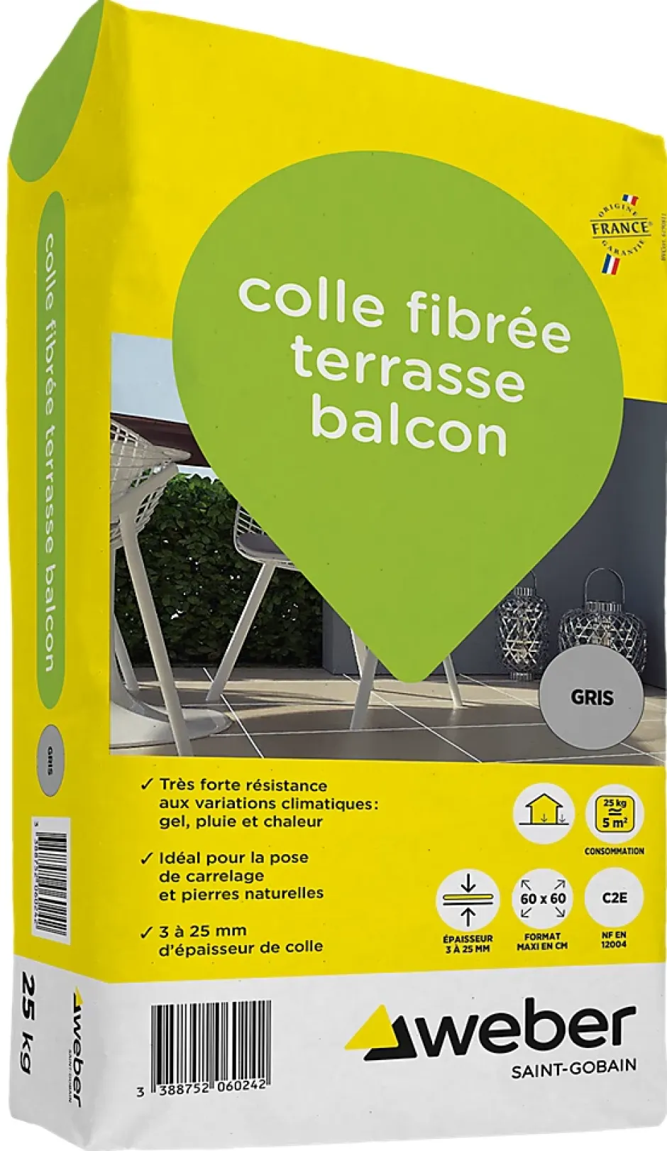 Colle fibrée terrasse balcon gris Weber 25kg