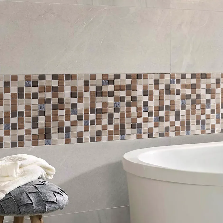 - élément de déco à part entière, ce produit peut s’accorder à un large éventail de carrelages muraux ; il peut être posé par dalles entières ou coupé pour créer des bordures décoratives