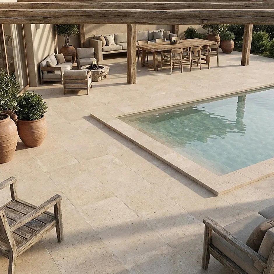 Le carrelage TIVOLI 60×60 cm imitation travertin est un choix parfait pour ceux qui souhaitent apporter une touche élégante et naturelle à leur extérieur. Avec son effet pierre, il recrée l’authenticité du travertin tout en offrant une finition moderne et pratique. Son format généreux de 60×60 cm permet de couvrir de grandes surfaces, créant une atmosphère accueillante et sophistiquée pour vos terrasses.Ce carrelage est doté d’une finition antidérapante R11, ce qui en fait une option idéale pour les zones extérieures susceptibles d’être humides, comme autour des piscines ou des zones de passage fréquent. Résistant aux intempéries et à l’usure, il conserve son apparence tout au long de l’année, même en cas de conditions climatiques difficiles.L’aspect authentique du TIVOLI s’intègre parfaitement avec divers styles d’aménagement extérieur, qu’il soit contemporain, méditerranéen ou classique. Ses teintes neutres apportent du charme tout en étant faciles à assortir avec d’autres matériaux, comme le bois ou le métal, pour créer une ambiance harmonieuse. De plus, sa surface rectifiée permet une pose uniforme et soignée, garantissant un rendu visuel impeccable.Le carrelage TIVOLI est également conçu pour être durable et facile à entretenir, ce qui en fait un choix pratique pour les espaces extérieurs. Sa robustesse lui permet de résister aux contraintes d’un usage quotidien, tout en conservant son aspect esthétique. Optez pour le carrelage TIVOLI pour sublimer vos extérieurs avec élégance et fonctionnalité.