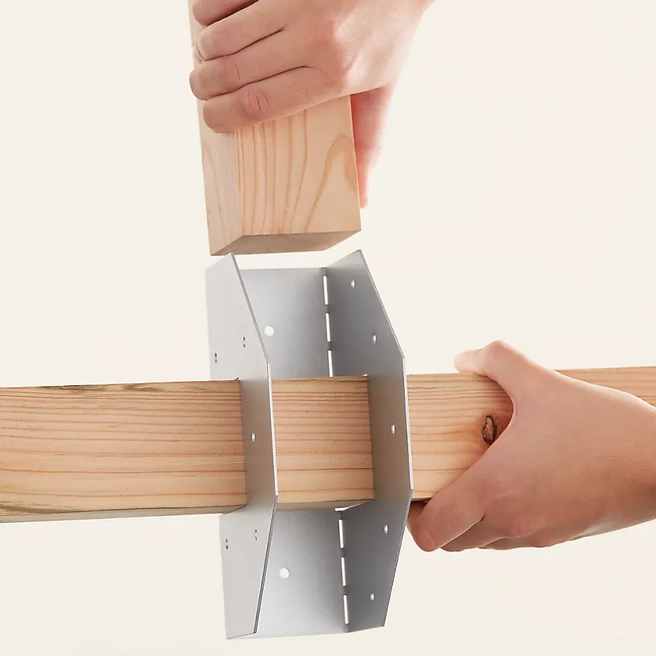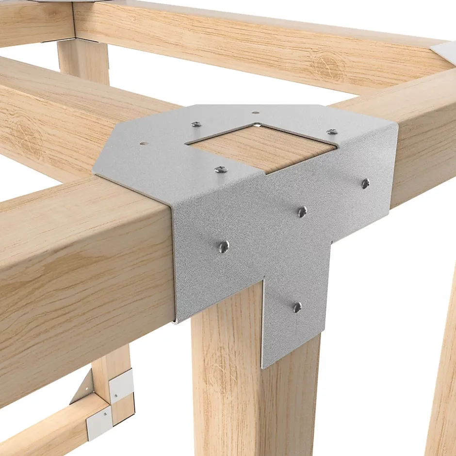 - Simplicité d’utilisation : pliez simplement les connecteurs à la main, insérez l’élément en bois et vissez dans les trous pré-percés.