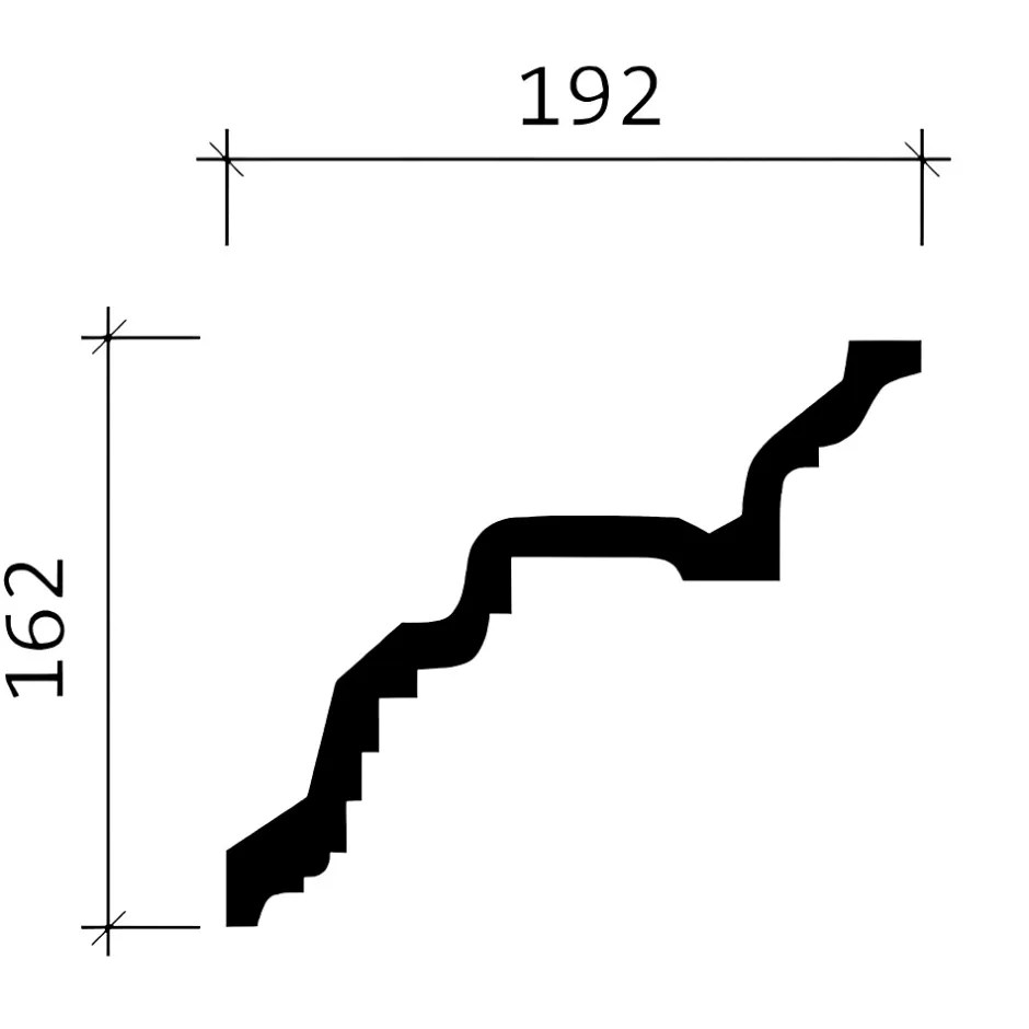 - Corniche, dimensions: 200 cm x 19,2 cm x 16,2 cm. La surface est prétraité