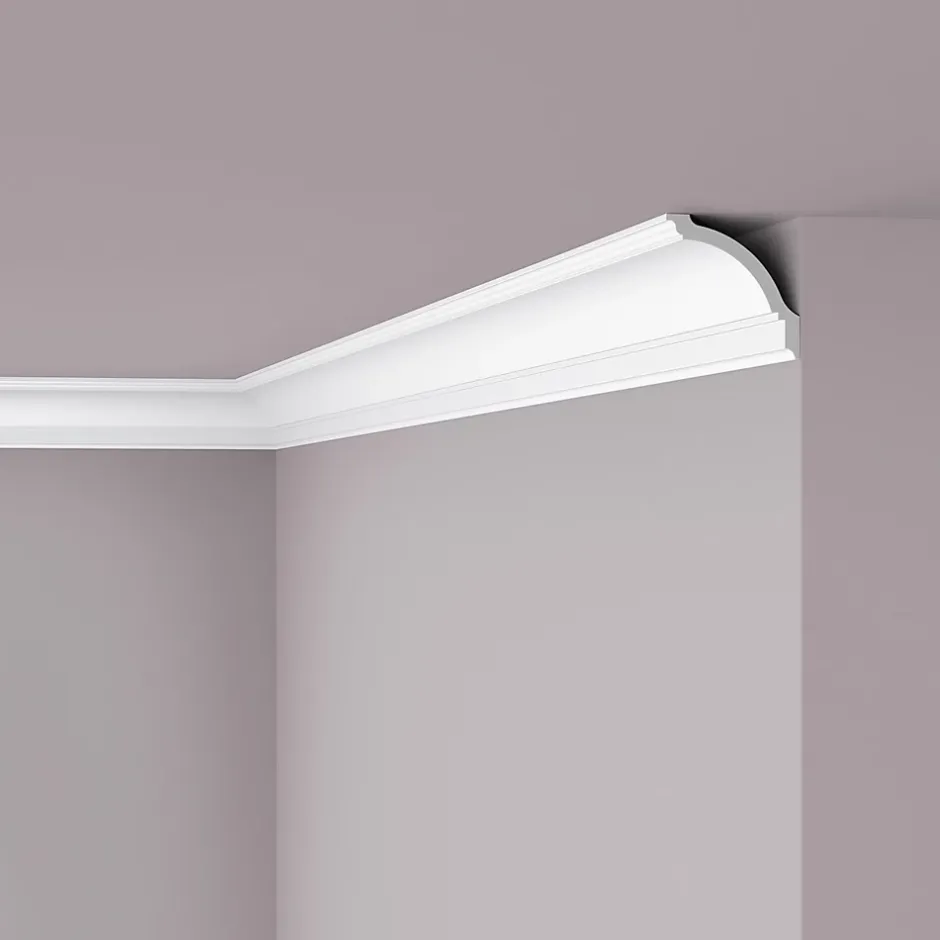 - FORMAT XXL IMPOSANT : Avec sa section de 100 x 100 mm, la corniche GP est l’une des plus larges de la gamme NOMASTYL. Elle est idéale pour les pièces à haut plafond et les grands volumes, apportant une touche de prestige immédiate.