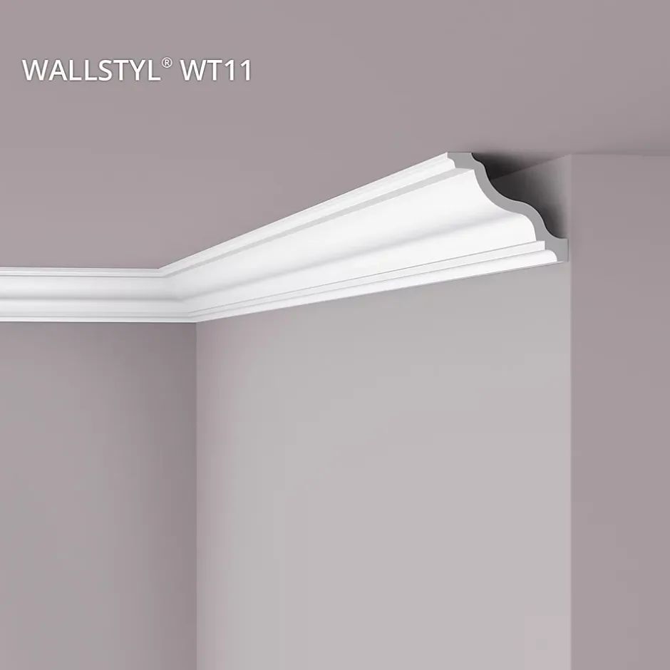 Numéro d’article WT11 Type de produit Corniche Fabricant NMC Pays / région de production Belgique Collection WALLSTYL Modèle no. WALLSTYL | WT11 Matériau Polystyrène extrudé (HDPS) Version pas flexible Longueur (cm) 200 Largeur (cm) 12.6 Hauteur (cm) 10.6 Couleur de base blanc Style intemporel / classique Adhésif approprié ADEFIX (intérieurs, enduit), ADEFIX Plus (pièces humides, joints) Propriétés du matériau léger, indéformable, résistant aux chocs Finition de surface prétraité Apprêt apprêt blanc mat sur base acrylique Approprié pour intérieurs