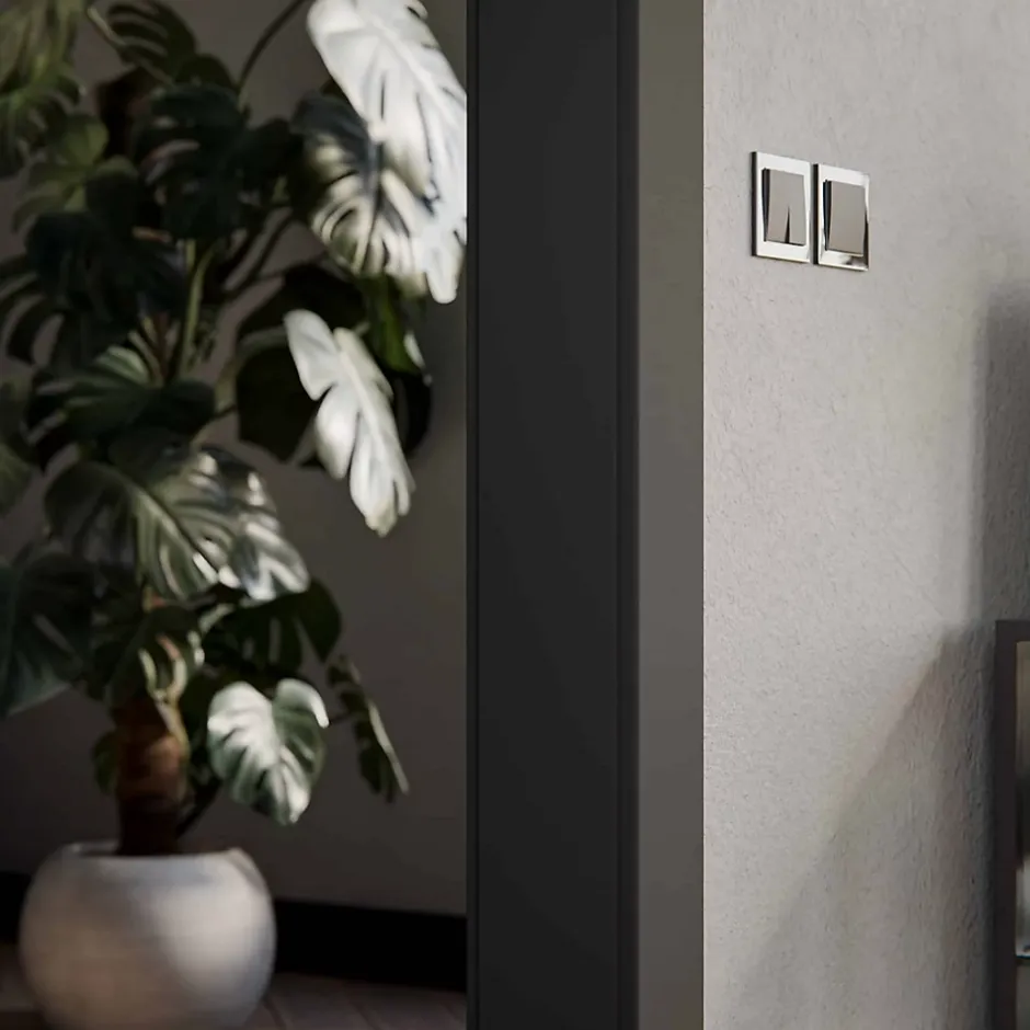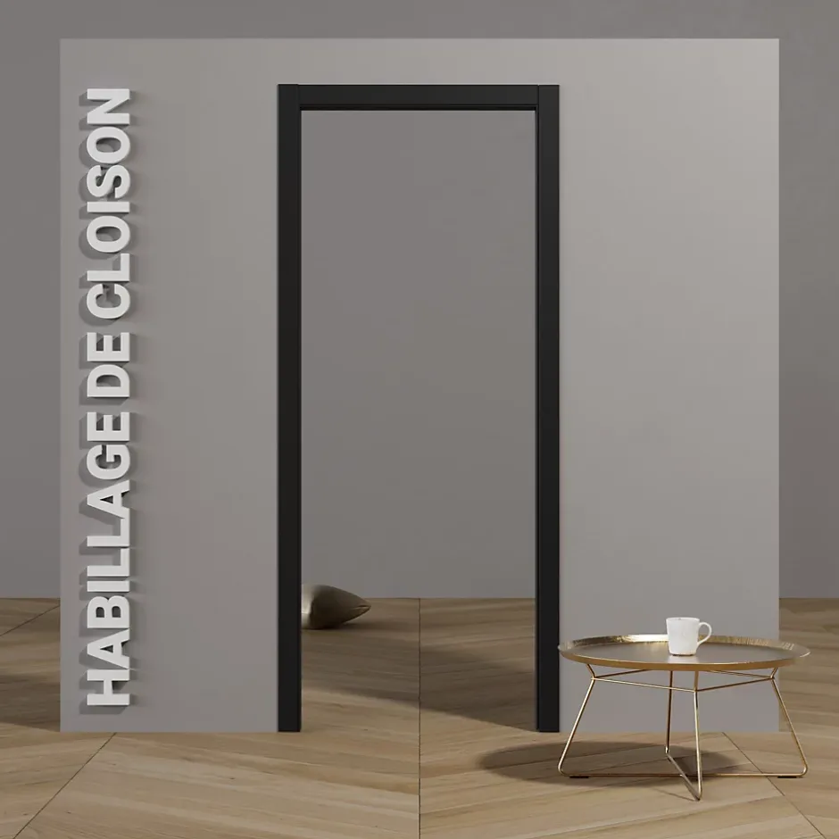 L’habillage de cloison : la solution pour ouvrir les espaces intérieurs Avec l’habillage de cloison Coulicool, transformez et modernisez votre intérieur. Ce kit pour ouverture simple jusqu’à 1 mètre permet d’obtenir une jolie finition de vos encadrements de menuiserie si vous souhaitez remplacer une porte battante par une porte coulissante, ou bien créer une ouverture murale afin de faire communiquer les espaces. Revêtu d’un papier décor noir, cet habillage de cloison jusqu’à 1 mètre en MDF s’accorde avec de nombreux styles de décoration. À la fois sobre et élégant, il apporte du contraste à votre intérieur. L’habillage de cloison bénéficie d’un système re-coupable, permettant de l’adapter à plusieurs tailles d’ouvertures. Dimensions de réservation : h. 213 cm x l. 100 cm Habillage noir : moderne et élégant Re-coupable Un profil extensible de 70 mm à 100 mm : l’avantage de l’habillage de cloison Le kit comprend plusieurs supports et joues, dont un profil extensible qui s’adapte à la taille de votre ouverture et à l’épaisseur de votre cloison, allant de 70 à 100 mm. Les profils d’angle avec lèvres de recouvrement viennent épouser intégralement la forme du dormant ou de la cloison. L’habillage d’encadrement de porte Coulicool jusqu’à 1 mètre est conçu pour s’installer facilement. Il se pose par simple collage, à l’aide d’une colle adaptée au support. Pour ce qui est de l’entretien, il peut être nettoyé à l’eau savonneuse. Pose facile par collage Installation sans outillage spécifique Profil extensible de 70 mm à 100 mm