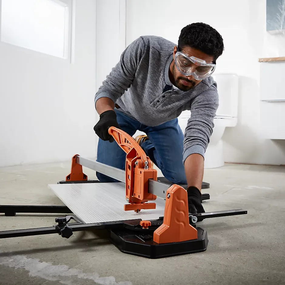 - La grande base en aluminium offre davantage de stabilité lors de la coupe de carreaux plus grands et plus épais