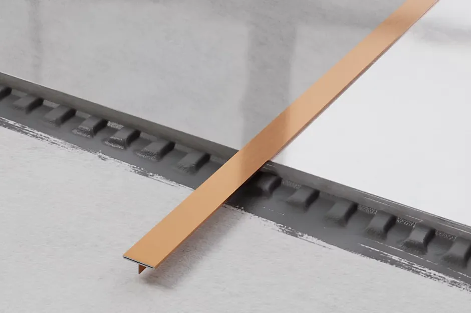 PROFIL TS POUR JOINTS EN ACIER INOX POUR MASQUAGE DE JOINTSLe profil rectifié Ts permet un masquage pratique des joints, par exemple entre les carreaux et les panneaux. La barre de joint permet une couverture précise du joint en incorporant directement la barre dans l’espace de dilatation ou dans le joint (profil de mortier)Ce produit est un Profil Rectifié : qu’est-ce que cela signifie?La bande rectifiée est soumise à un autre processus de découpe des bords avant de plier l’acier en un produit fini. Grâce à cela, le profil après pliage présente des bords plus esthétiques et plus serrés, s’accordant parfaitement avec les carreaux rectifiés. Les lattes rectifiées sont esthétiquement plus agréables que les profilés pliés classiques.Méthode d’assemblage:• Les profilés sont installés à l’aide d’un adhésif de montage ou en les incorporant dans l’adhésif pour carreaux.• Les profilés peuvent être facilement coupés à la longueur souhaitée à l’aide d’une cisaille à métaux ou d’un meuleuse angulaire avec un disque de coupe pour métal.Les avantages:Acier coloré avec la technique PVD en phase de production, cette couleur est permanente.ATTENTION le profil n’est coloré que dans la partie décorative , la partie interne du « T » n’est pas colorée qui serait la partie utilisée pour le montage.Matériau de haute qualité provenant d’aciéries certifiées, protégé pendant le voyage et l’assemblage avec un film protecteur spécial qui ne rend pas visible la couleur réelle jusqu’à son retrait total.Angles de pliage finis « vivants » – sans joints, combinés avec des carreaux rectifiés.Le produit a le certificat de qualité ISO 9001:2015 et le certificat CE.