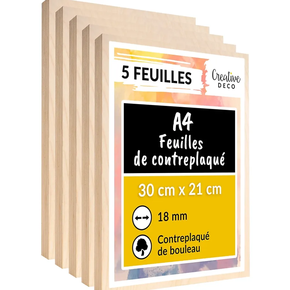 TAILLE IDÉALE – Chaque plaque a approximativement le format d’une feuille de papier A4. La longueur et la largeur du panneau ont une tolérance de +/-2 mm. Parfait pour du bricolage, du vernissage, des projets DIY, de la pyrogravure, des maquettes, du découpage, ou de la pyrogravure.BOIS CLASSE B/B – Nos planches se distinguent par une surface lisse et polie, garantissant au moins une face exempte de défauts. L’autre face peut contenir des défauts réparés d’une taille maximale de 6 cm. Dans certains cas, la face avant peut répondre aux normes de qualité de la classe A au lieu de B, et la face arrière aux normes de la classe C au lieu de B. Tous nos panneaux sont soigneusement vérifiés manuellement, ce qui permet de minimiser les défauts et de garantir la plus haute qualité.USAGE MULTIPLE – Les panneaux de contreplaqué peuvent être utilisés pour de nombreux projets d’artisanat. Vous pouvez faire de belles gravures, des ornements, des découpes et bien plus encore, comme de jolies décorations comme des planches avec des noms, des formes différentes, des signes pour des occasions telles qu’un anniversaire, Noël, Pâques, un baptême ou des enseignes de porte – il y a de nombreuses possibilités !DÉFORMATIONS RARES – Si la plaque se déforme accidentellement, mouillez le côté concave et séchez le côté convexe. Utilisez une éponge ou un pulvérisateur pour humidifier le côté concave du contreplaqué (eau chaude). Ensuite, posez la planche côté humide vers le bas sur le sol pour 2 jours.FABRIQUÉ DANS L’UE – Nous nous procurons nos produits dans l’Union européenne, qui applique certaines des normes les plus élevées au monde. C’est pourquoi, nous pouvons garantir une haute qualité de nos produits à nos clients. Nos produits sont fabriqués à partir de matériaux naturels et non toxiques.