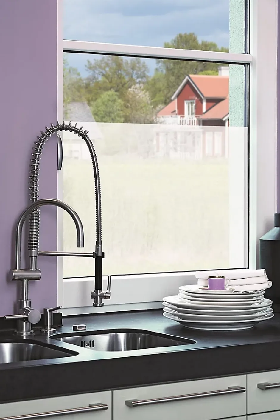 Le film adhésif décoratif spécial vitrage d-c-fix® permet de personnaliser ses fenêtres, portes et baies vitrées, parois de douche, table en verre ou toute autre surface vitrée lisse.