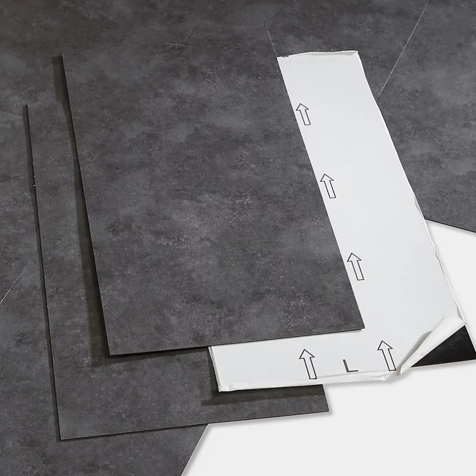 Dalle PVC adhésive PopRock Béton anthracite 30 x 60 cm GoodHome (vendue au carton)
